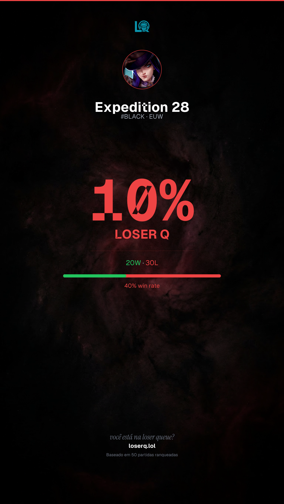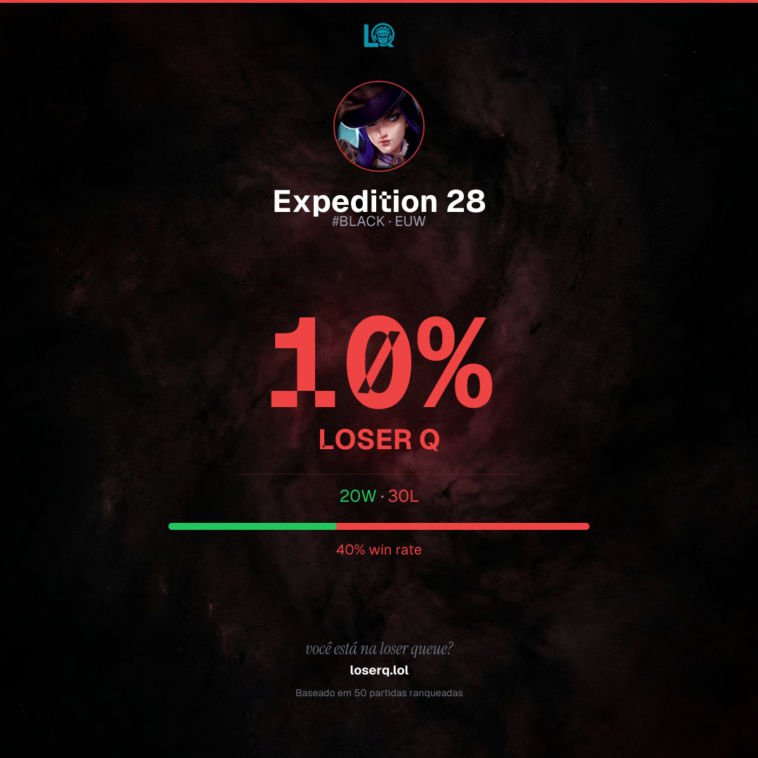 Você está 10% na Loser Q — desafia seus amigos a conferir