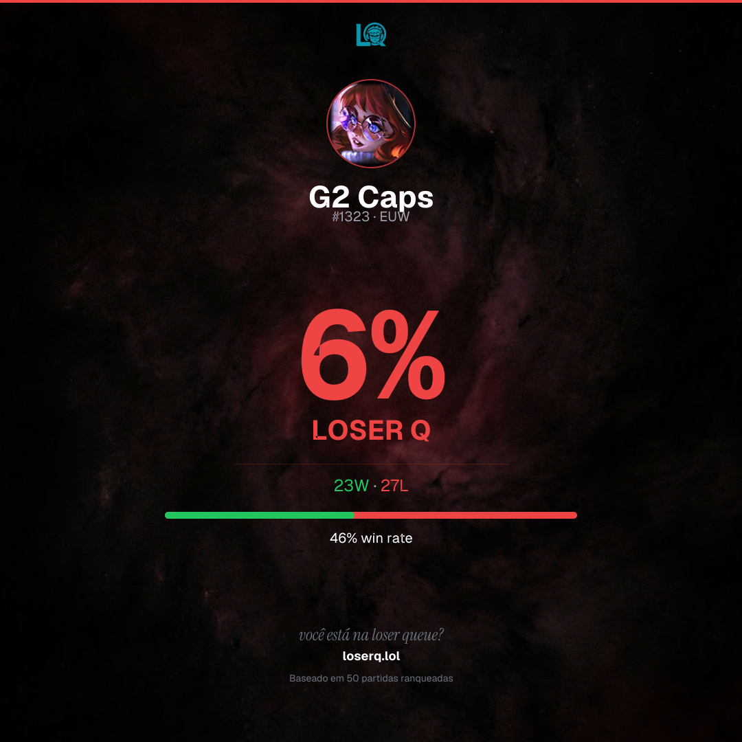 Você está 6% na Loser Q — desafia seus amigos a conferir