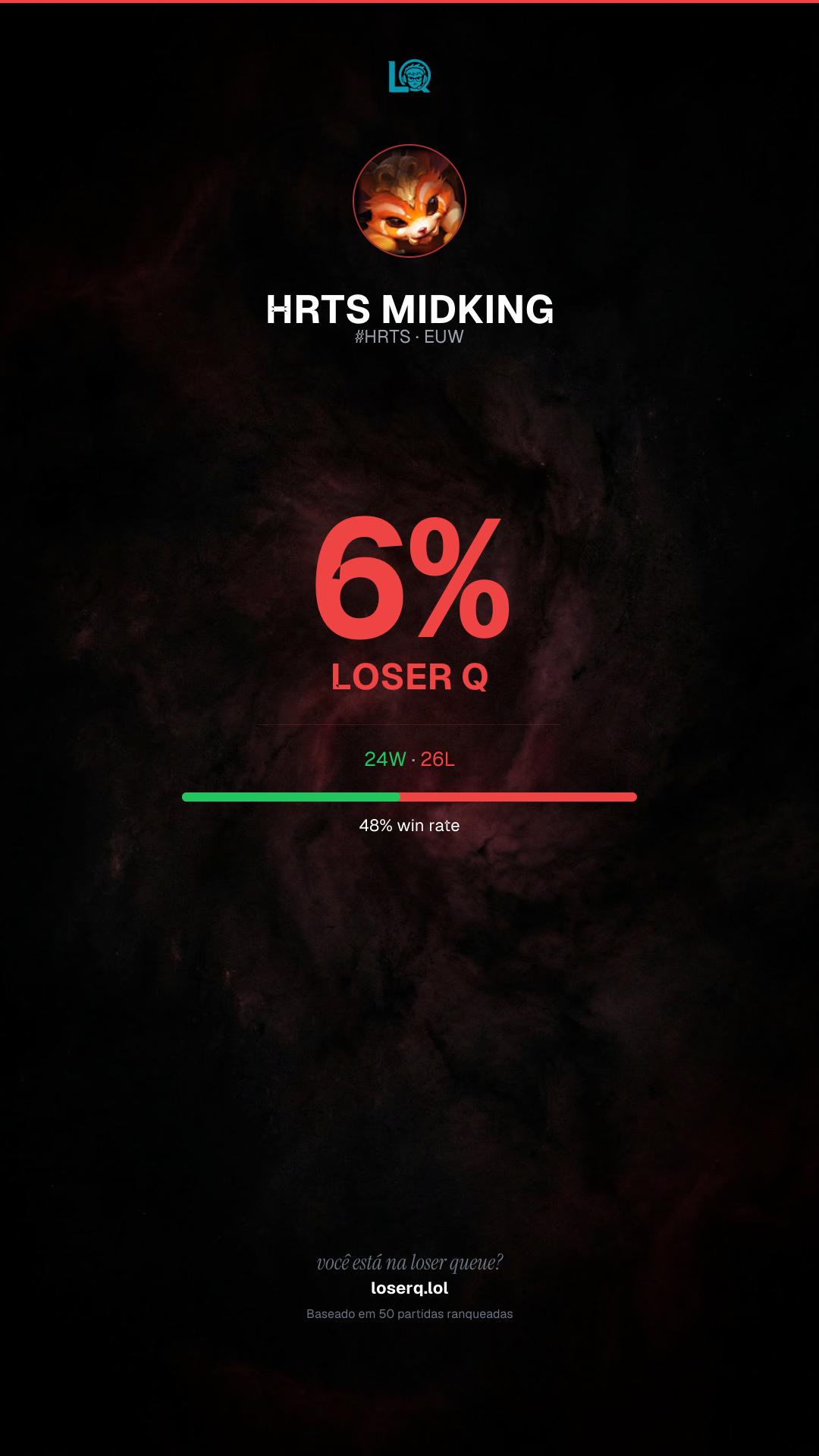 Você está 6% na Loser Q — desafia seus amigos a conferir