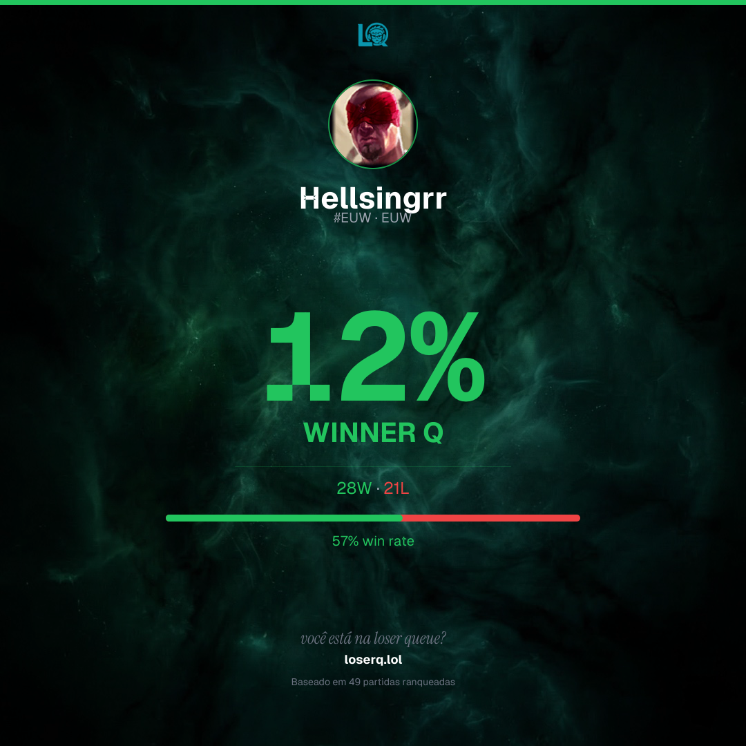 28 vitórias, 21 derrotas — 57% de win rate. Um bom desempenho.