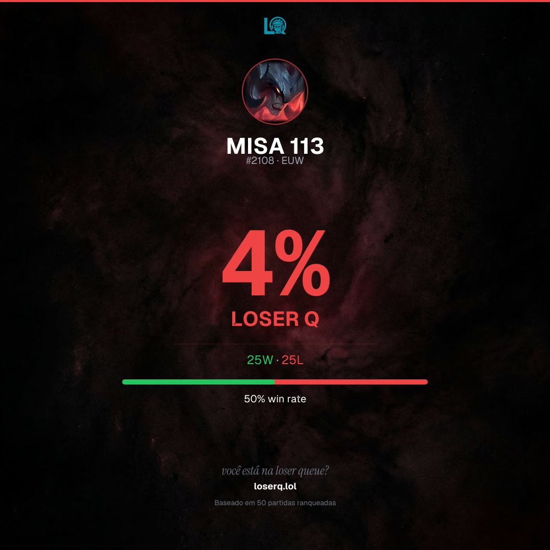 Você está 4% na Loser Q — desafia seus amigos a conferir