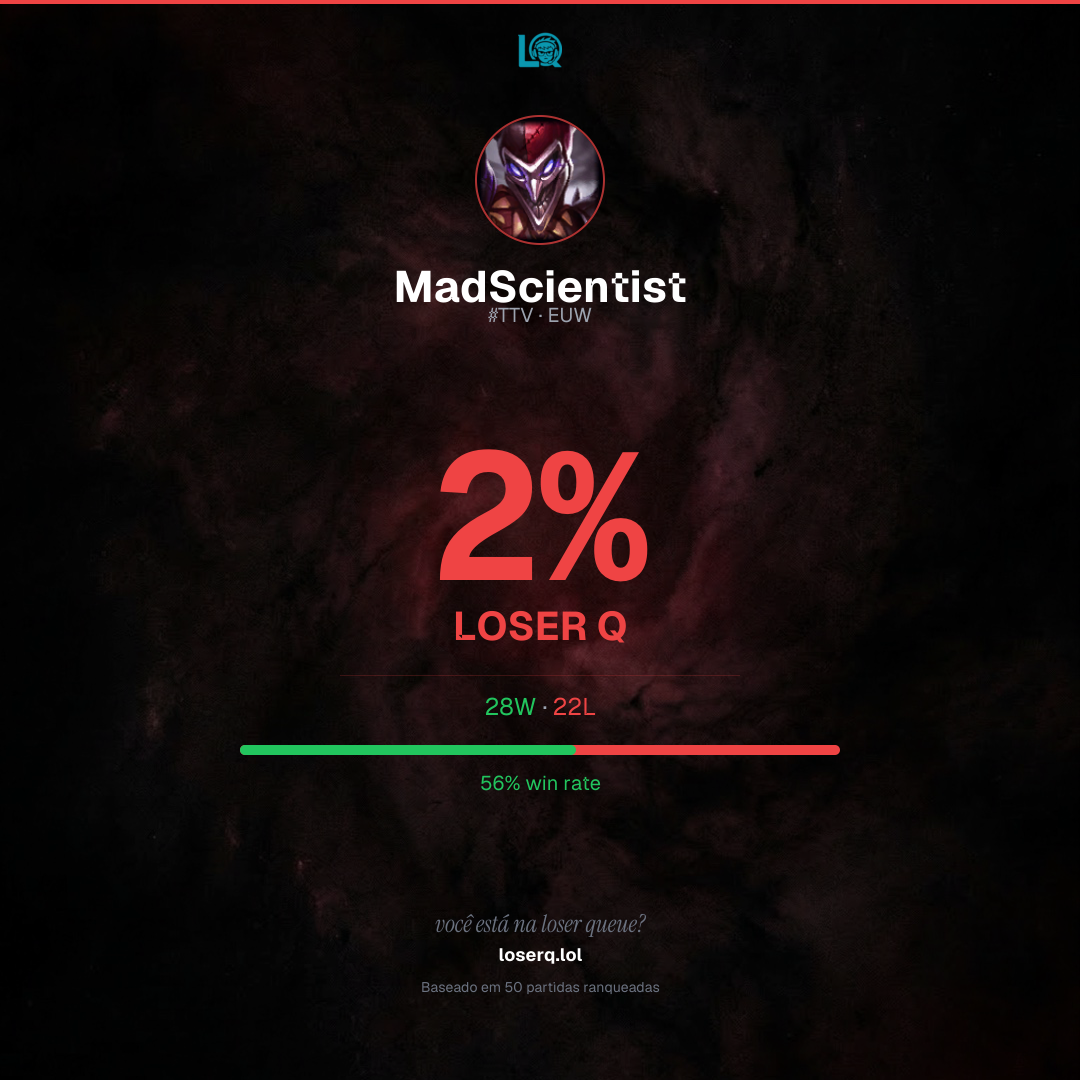 Você está 2% na Loser Q — desafia seus amigos a conferir