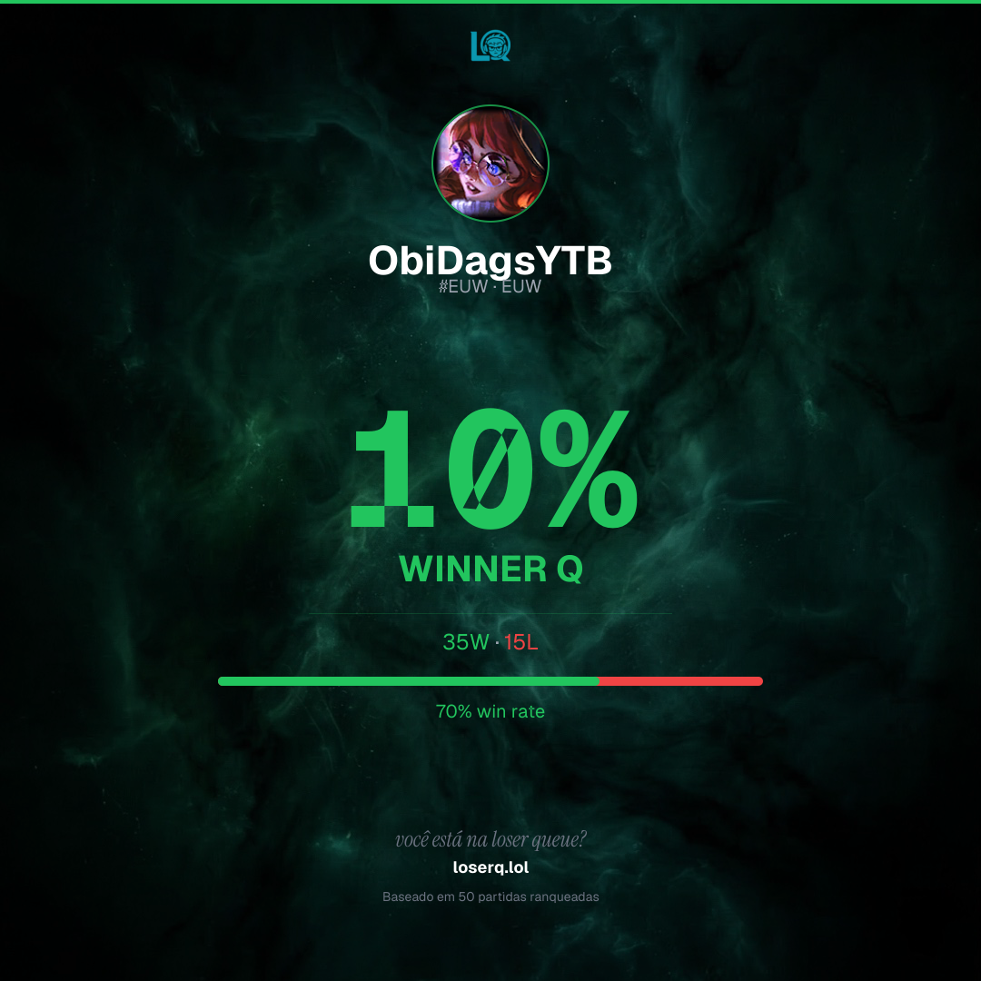 35 vitórias, 15 derrotas — 70% de win rate. Um bom desempenho.