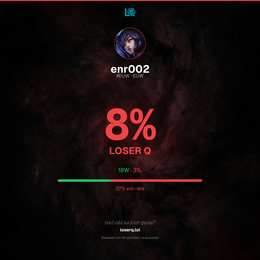Você está 8% na Loser Q — desafia seus amigos a conferir