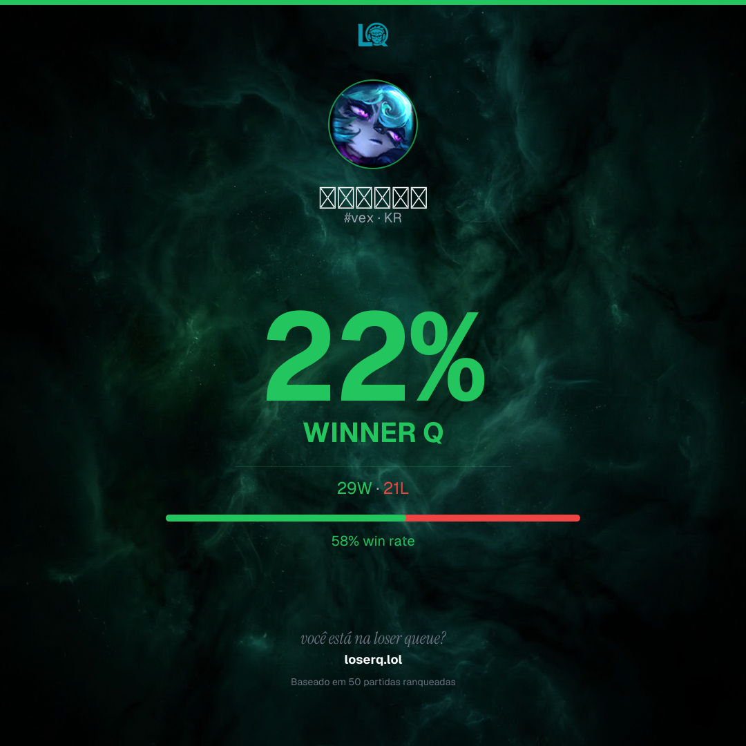 29 vitórias, 21 derrotas — 58% de win rate. Um bom desempenho.