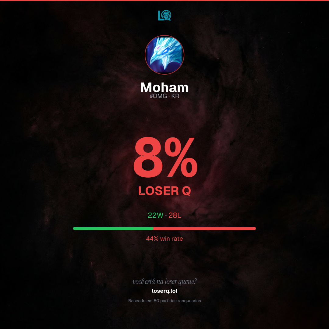 22 vitórias, 28 derrotas — 44% de win rate. Fase difícil.