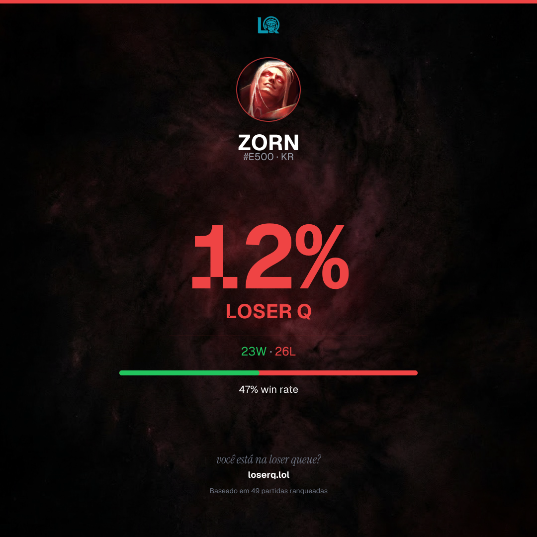 23 vitórias, 26 derrotas — 46% de win rate.
