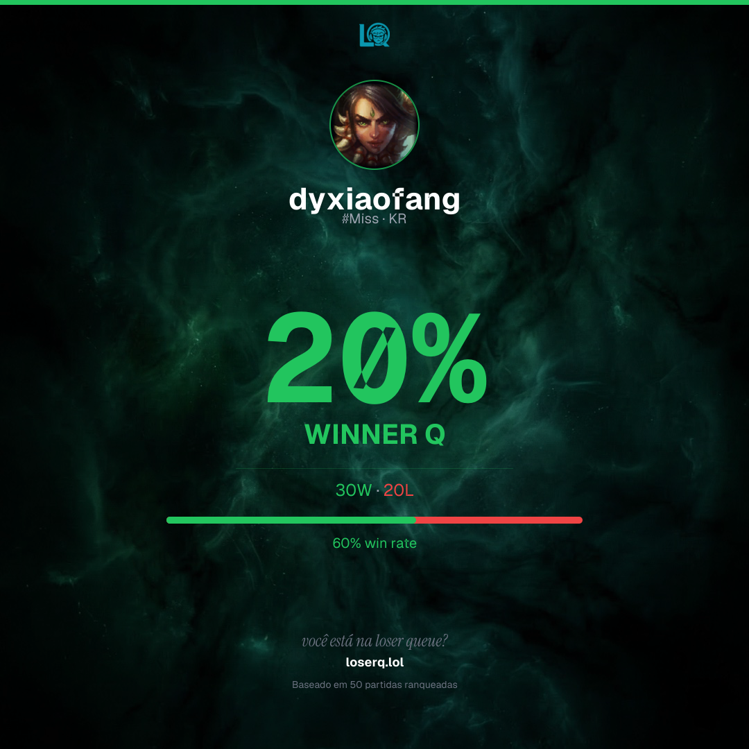 30 vitórias, 20 derrotas — 60% de win rate. Um bom desempenho.