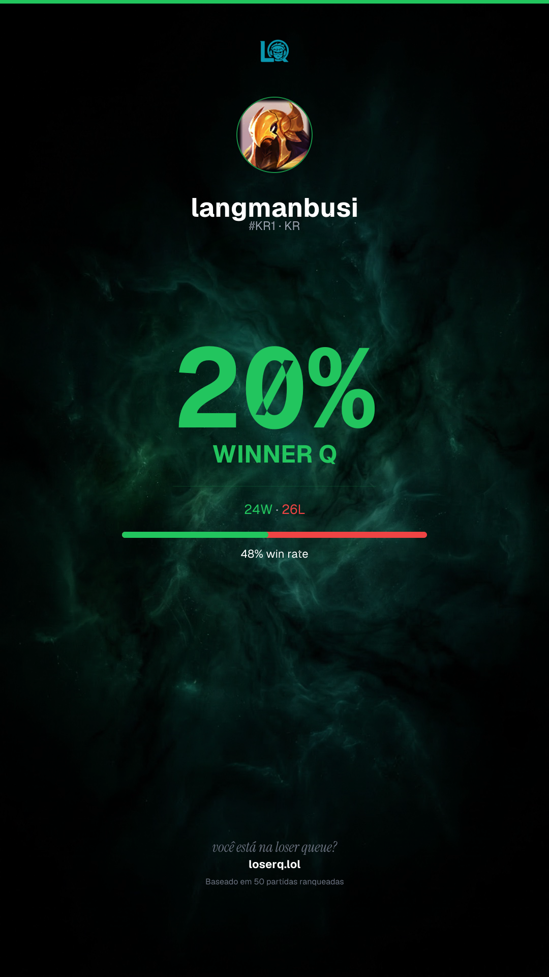 24 vitórias, 26 derrotas — 48% de win rate.