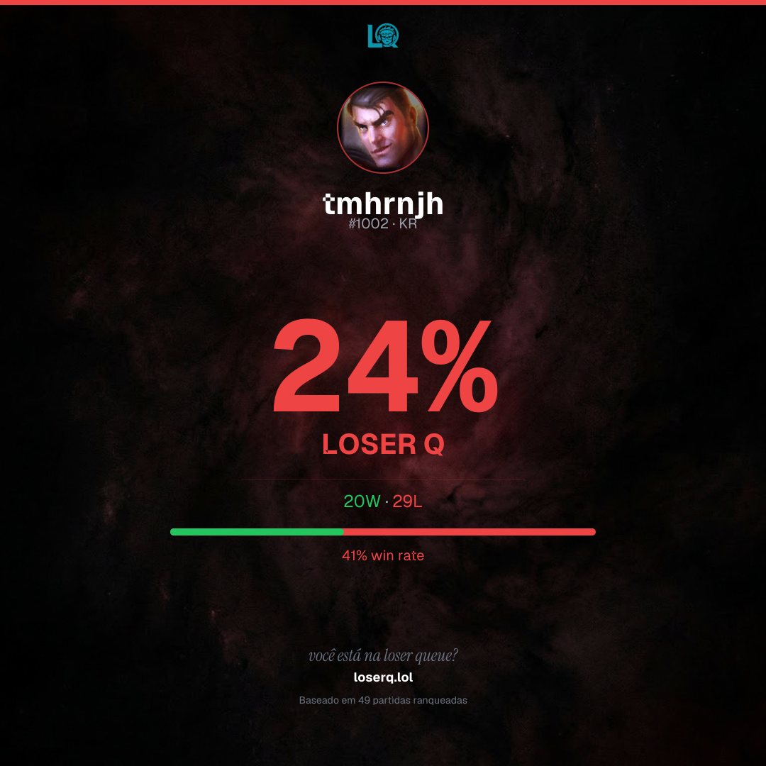 20 vitórias, 29 derrotas — 40% de win rate. Fase difícil.