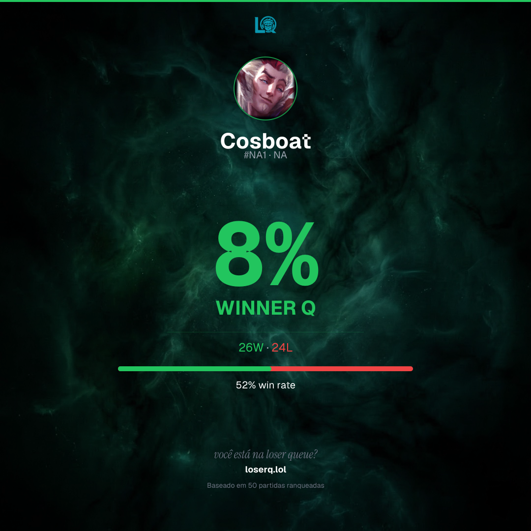 26 vitórias, 24 derrotas — 52% de win rate.