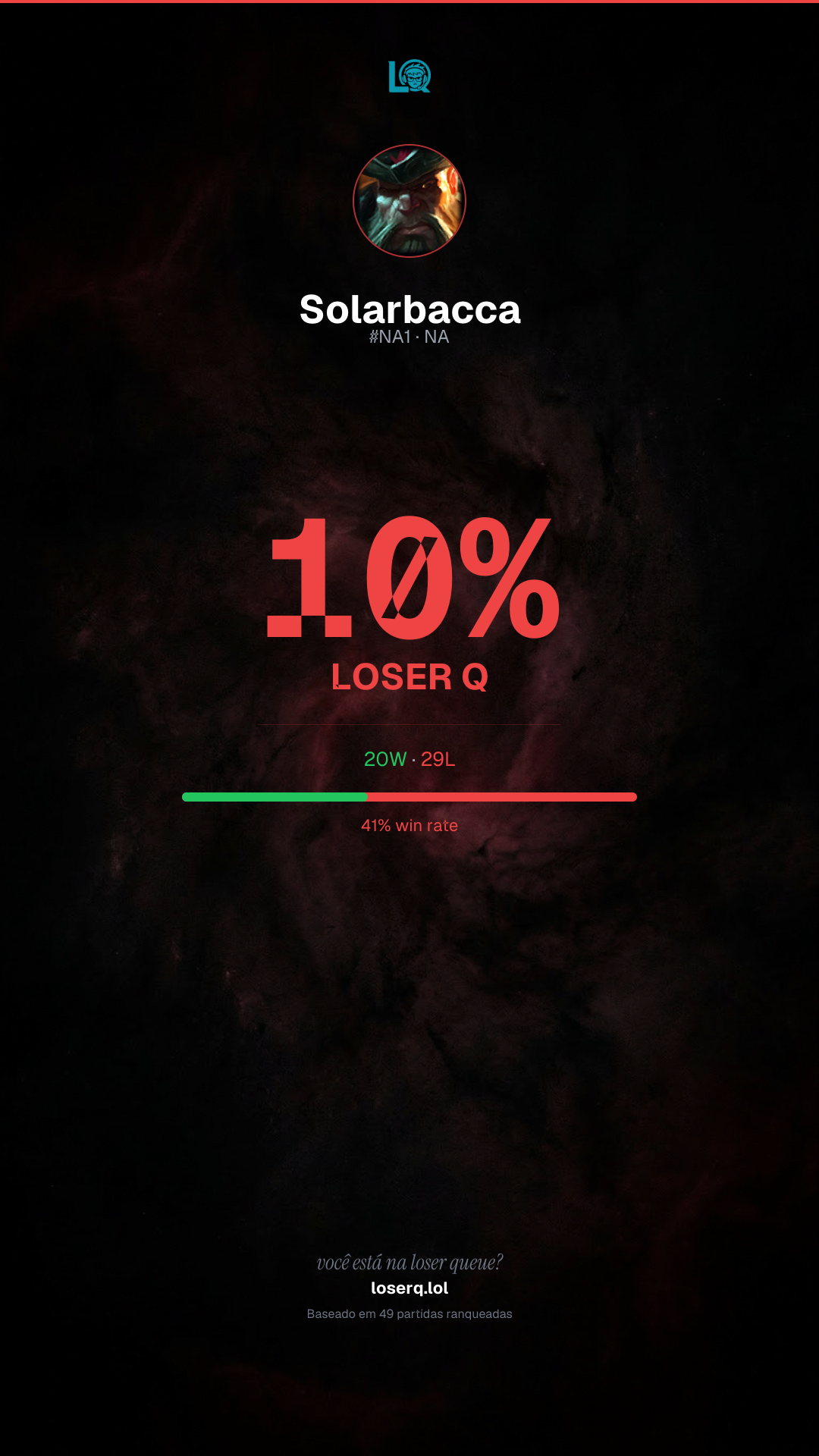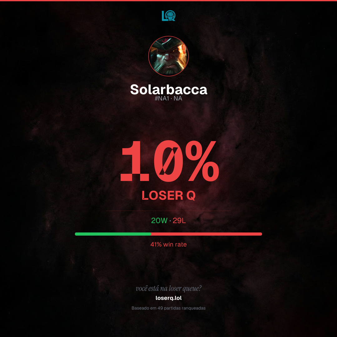 Você está 10% na Loser Q — desafia seus amigos a conferir