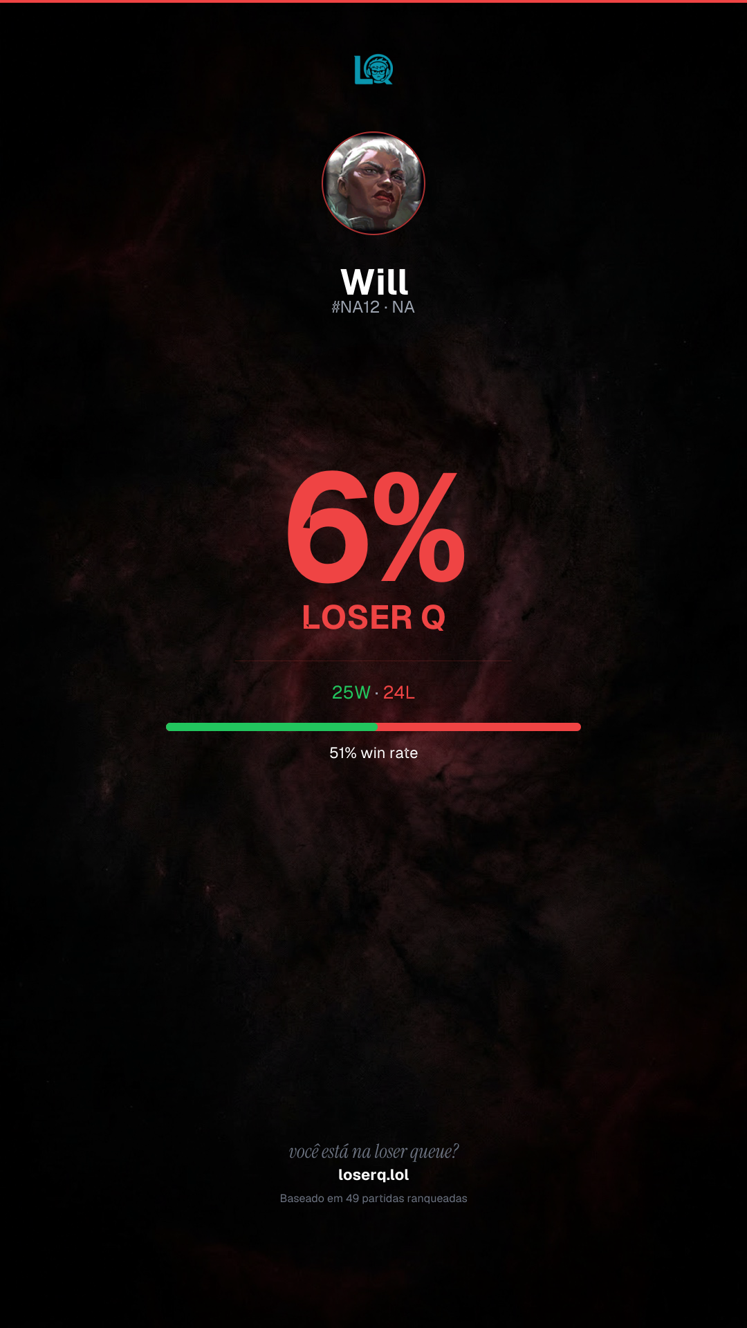 Você está 6% na Loser Q — desafia seus amigos a conferir