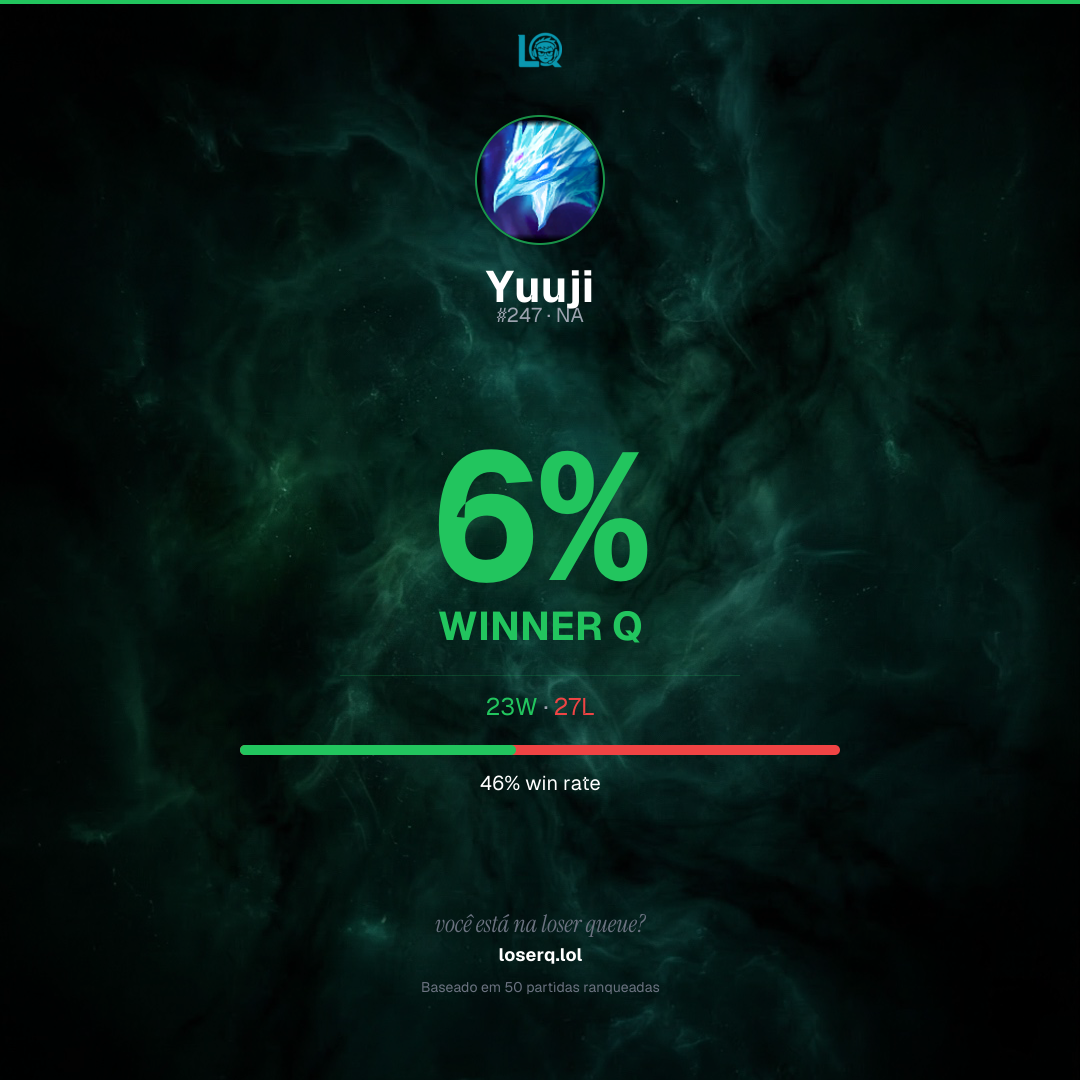 23 vitórias, 27 derrotas — 46% de win rate.