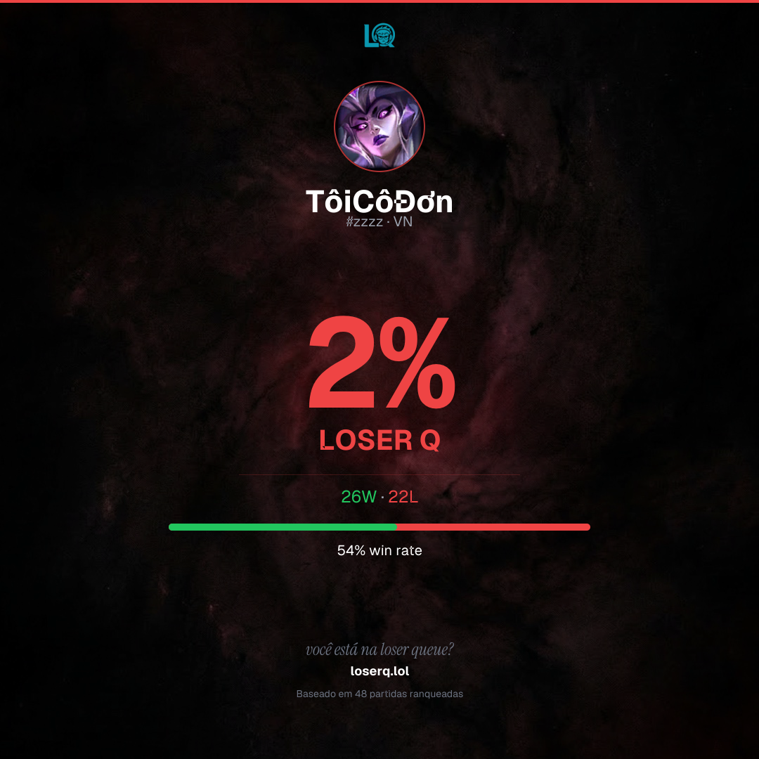 Você está 2% na Loser Q — desafia seus amigos a conferir