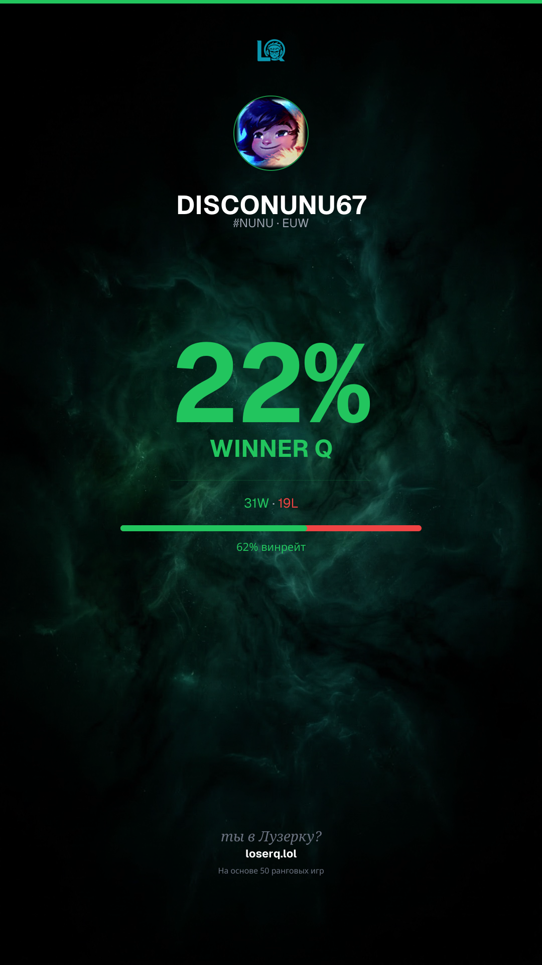 31–19, винрейт 62%. Сильный показатель.
