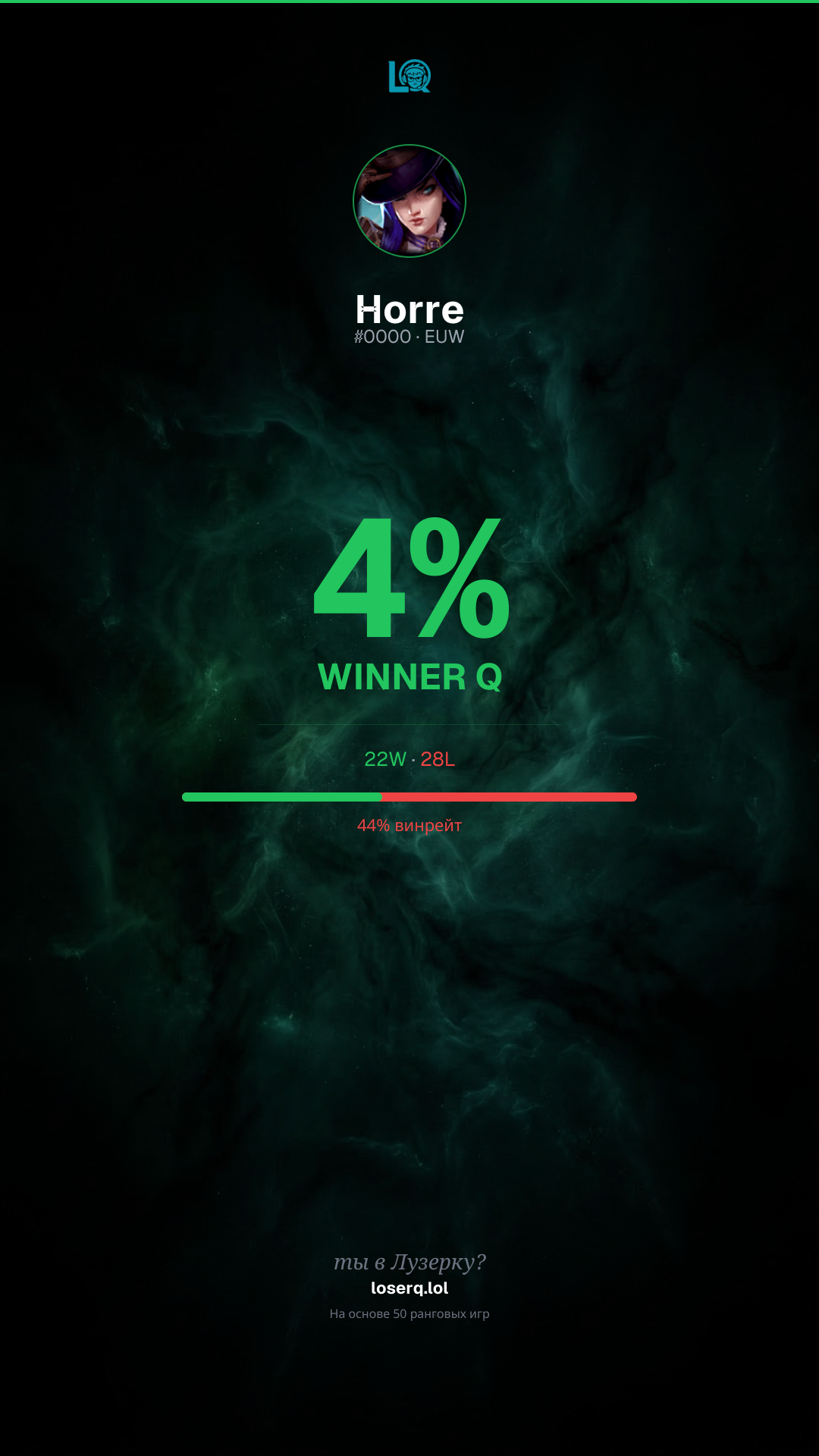 22W / 28L · 💀 Серия из 4 поражений
