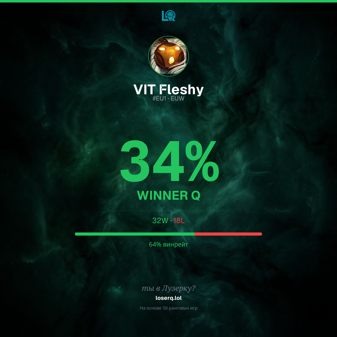 32–18, винрейт 64%. Сильный показатель.