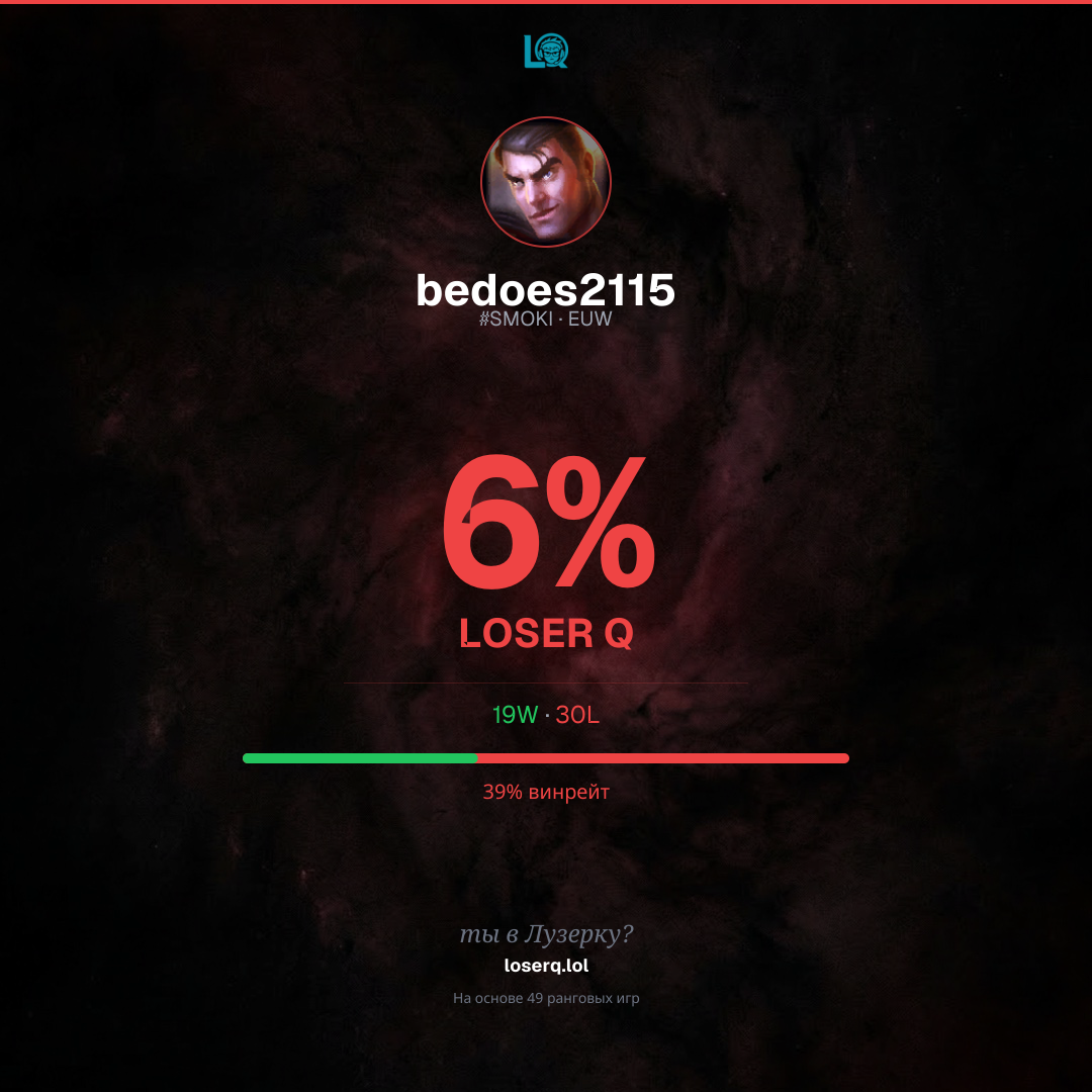 19–30, винрейт 38%. Тяжёлая полоса.