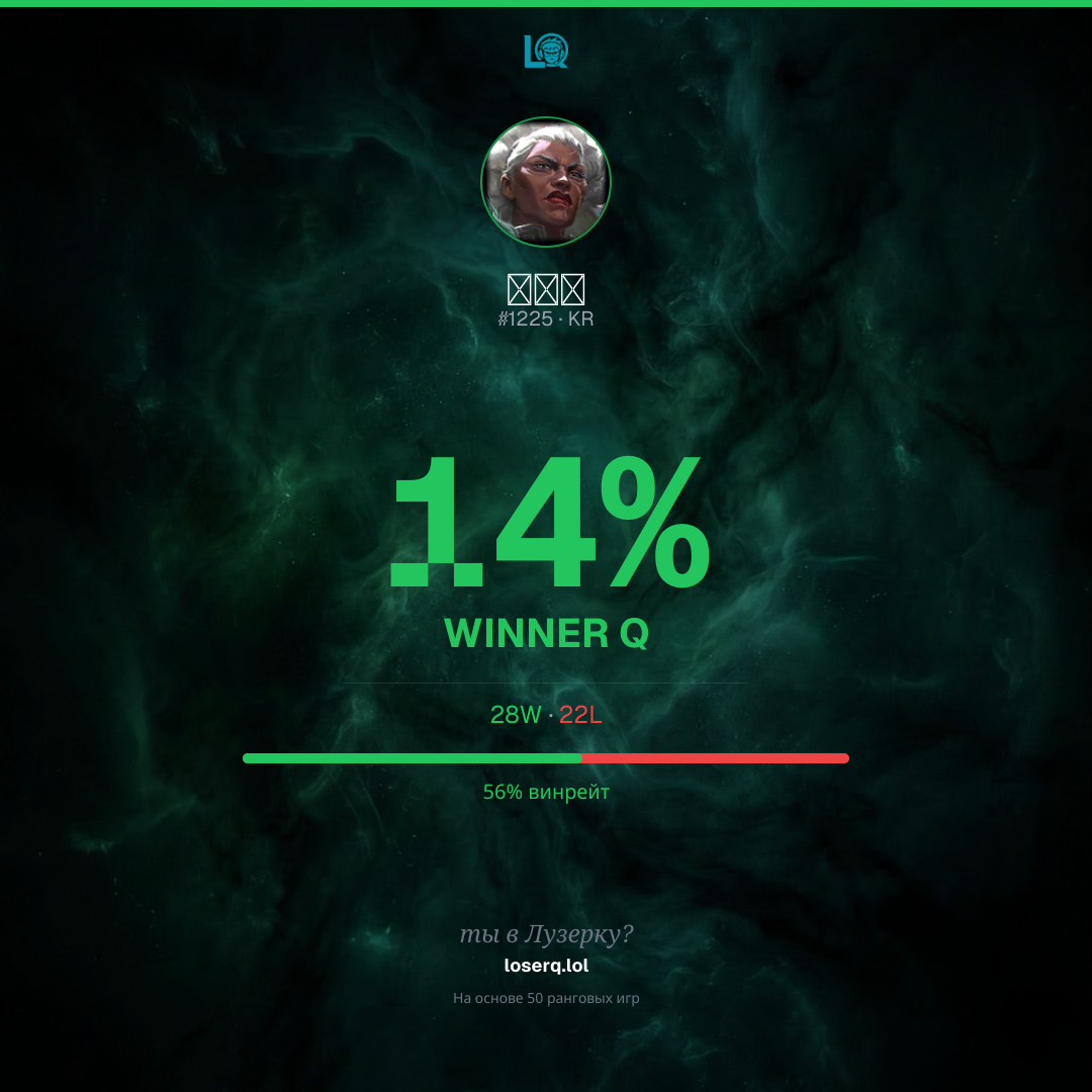 28–22, винрейт 56%. Сильный показатель.