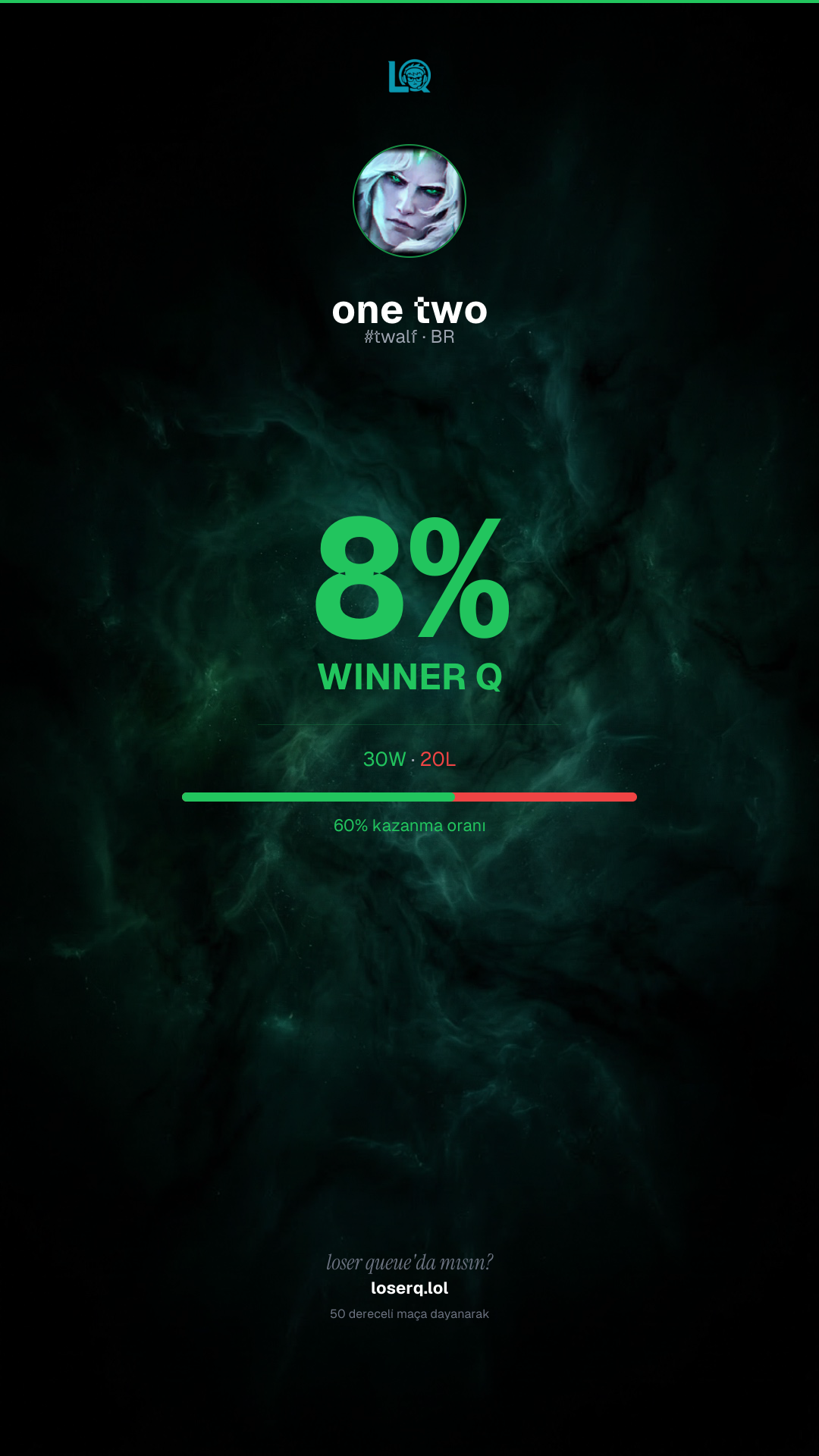 30 galibiyet, 20 mağlubiyet — 60% kazanma oranı. Güçlü bir performans.