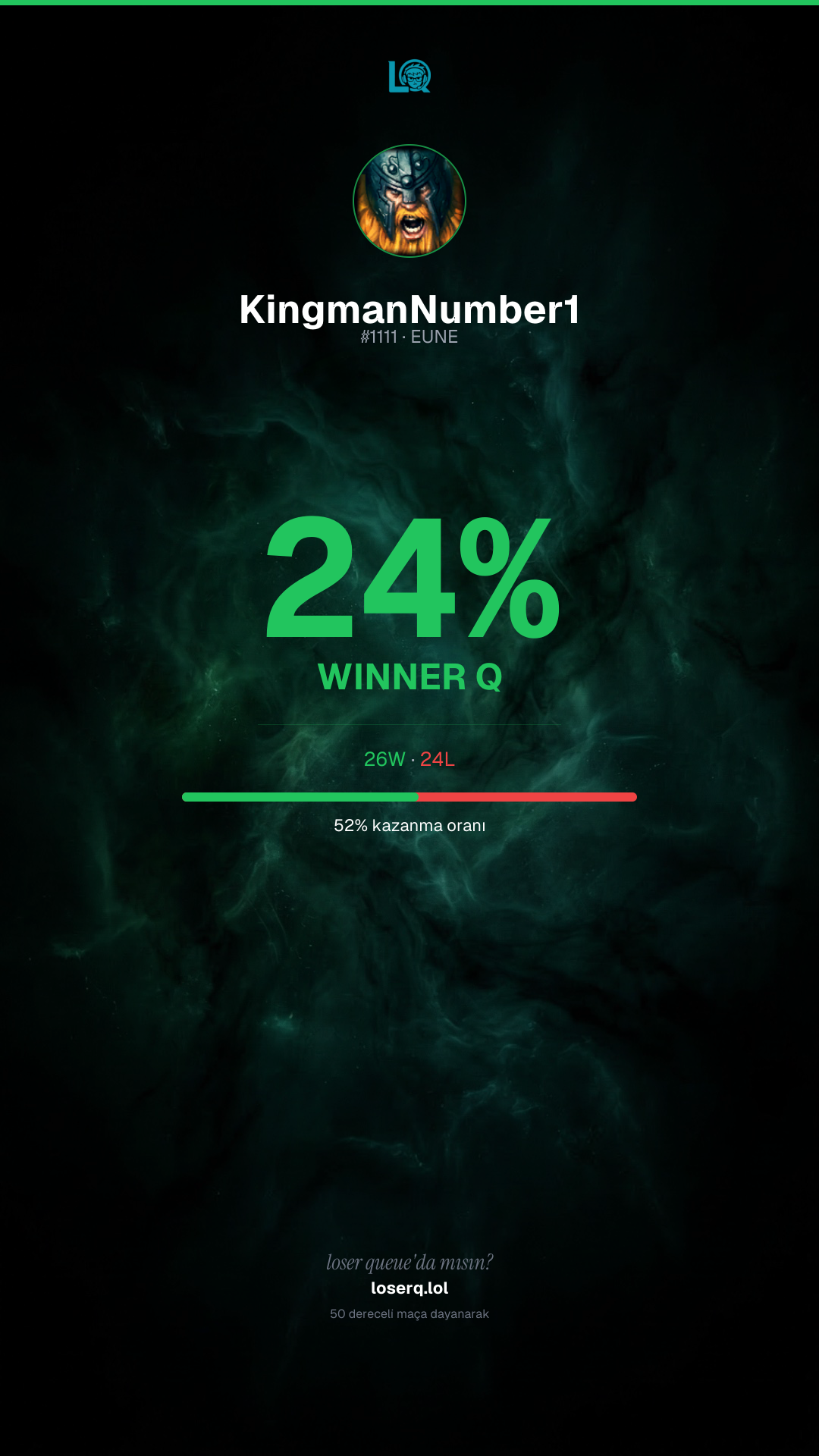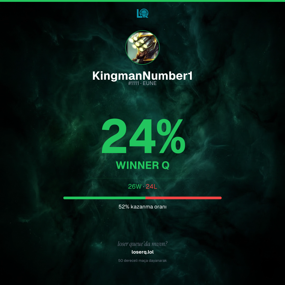 26 galibiyet, 24 mağlubiyet — 52% kazanma oranı.