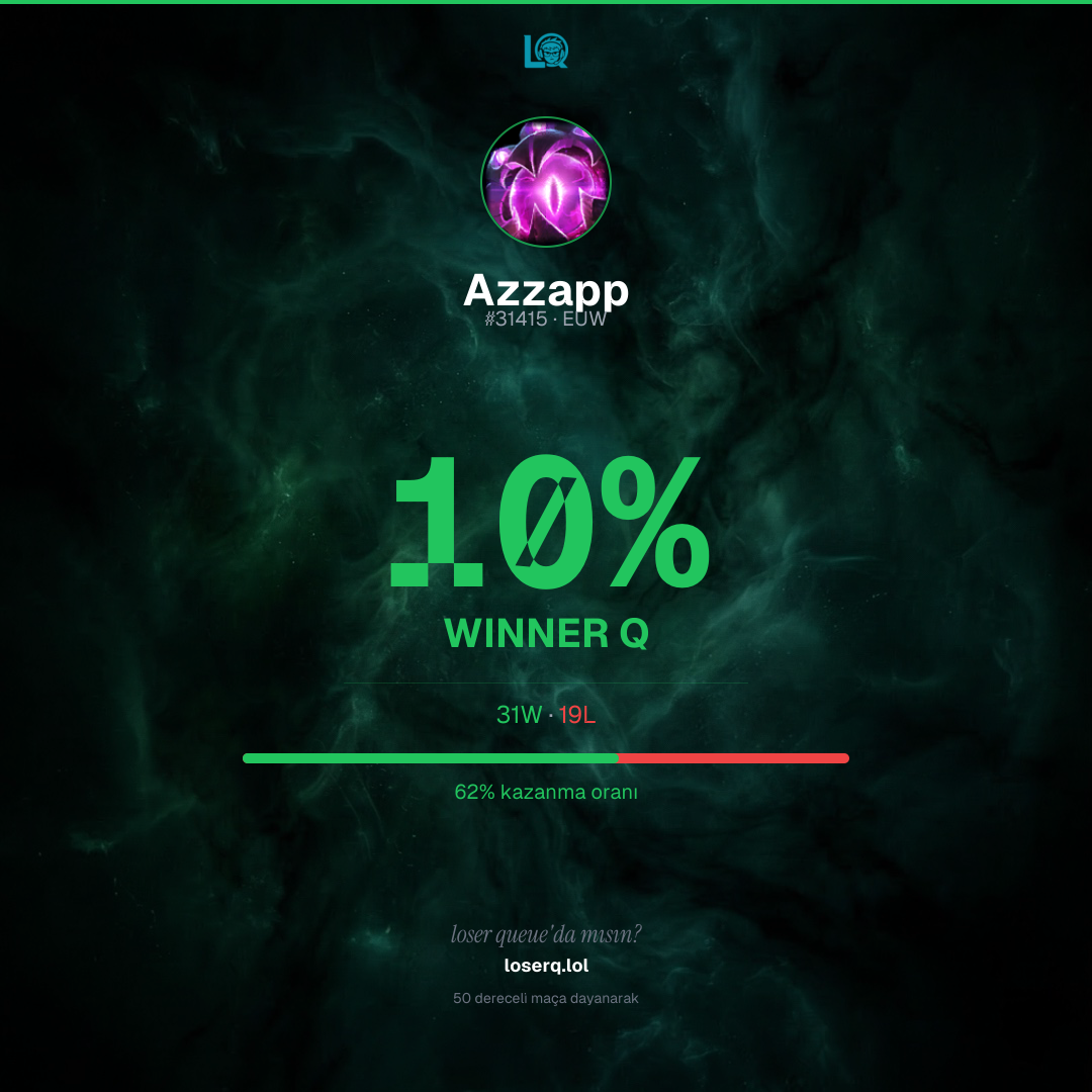 31 galibiyet, 19 mağlubiyet — 62% kazanma oranı. Güçlü bir performans.