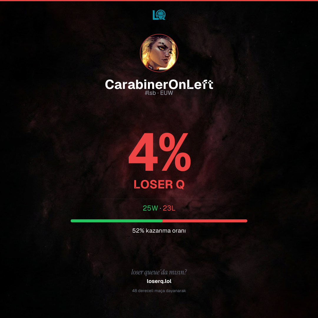 25 galibiyet, 23 mağlubiyet — 52% kazanma oranı.
