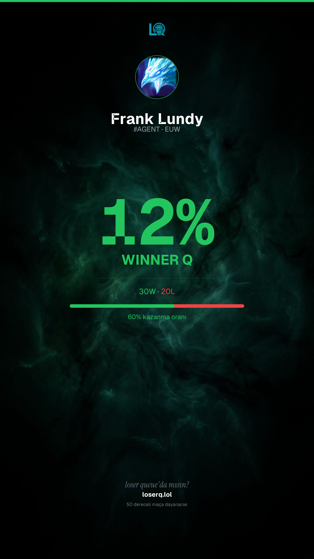 30 galibiyet, 20 mağlubiyet — 60% kazanma oranı. Güçlü bir performans.