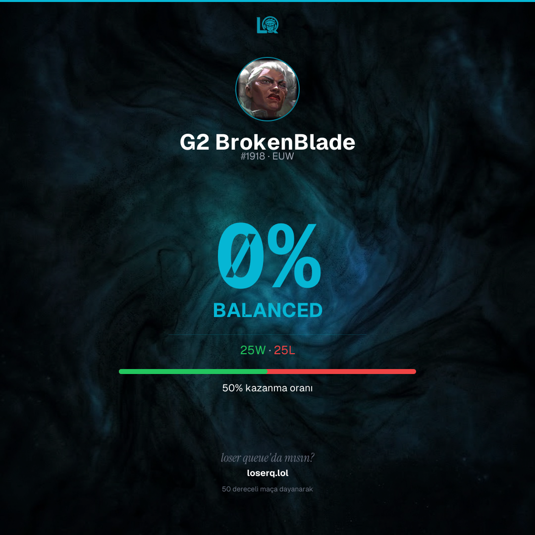 25 galibiyet, 25 mağlubiyet — 50% kazanma oranı.