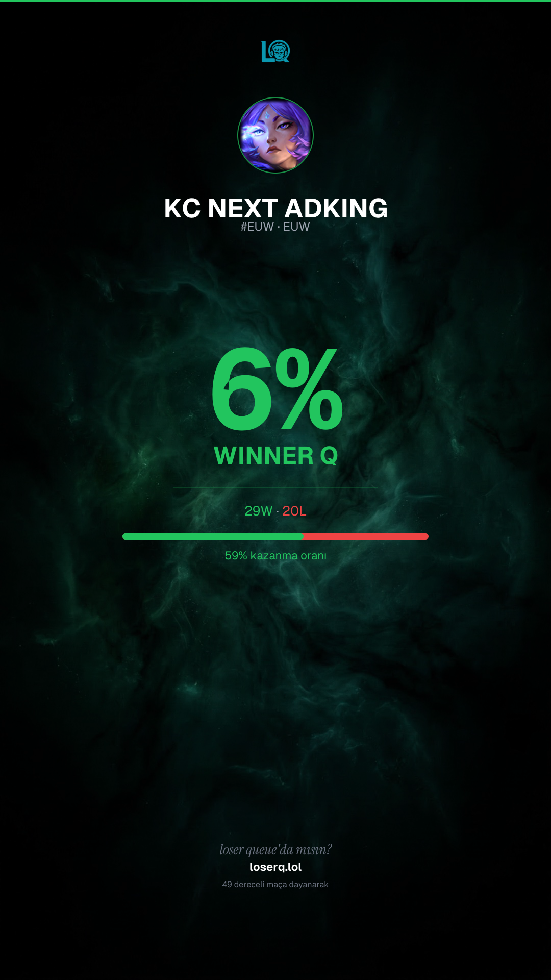 29 galibiyet, 20 mağlubiyet — 59% kazanma oranı. Güçlü bir performans.