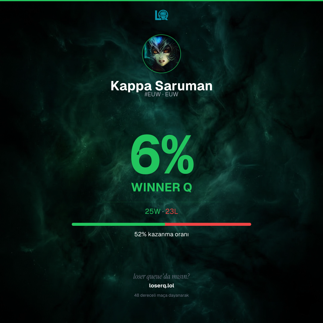 25 galibiyet, 23 mağlubiyet — 52% kazanma oranı.