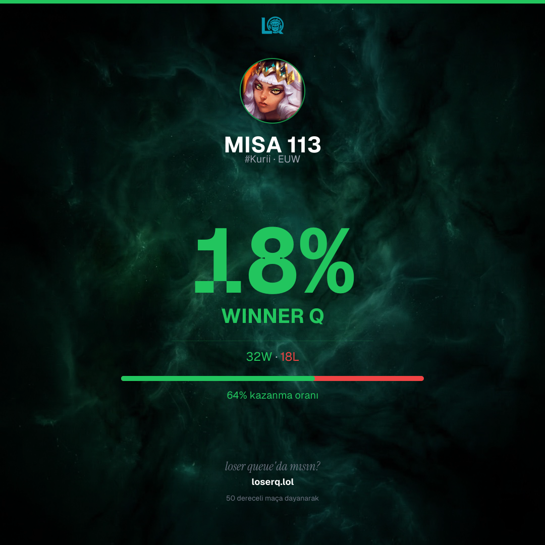 32 galibiyet, 18 mağlubiyet — 64% kazanma oranı. Güçlü bir performans.