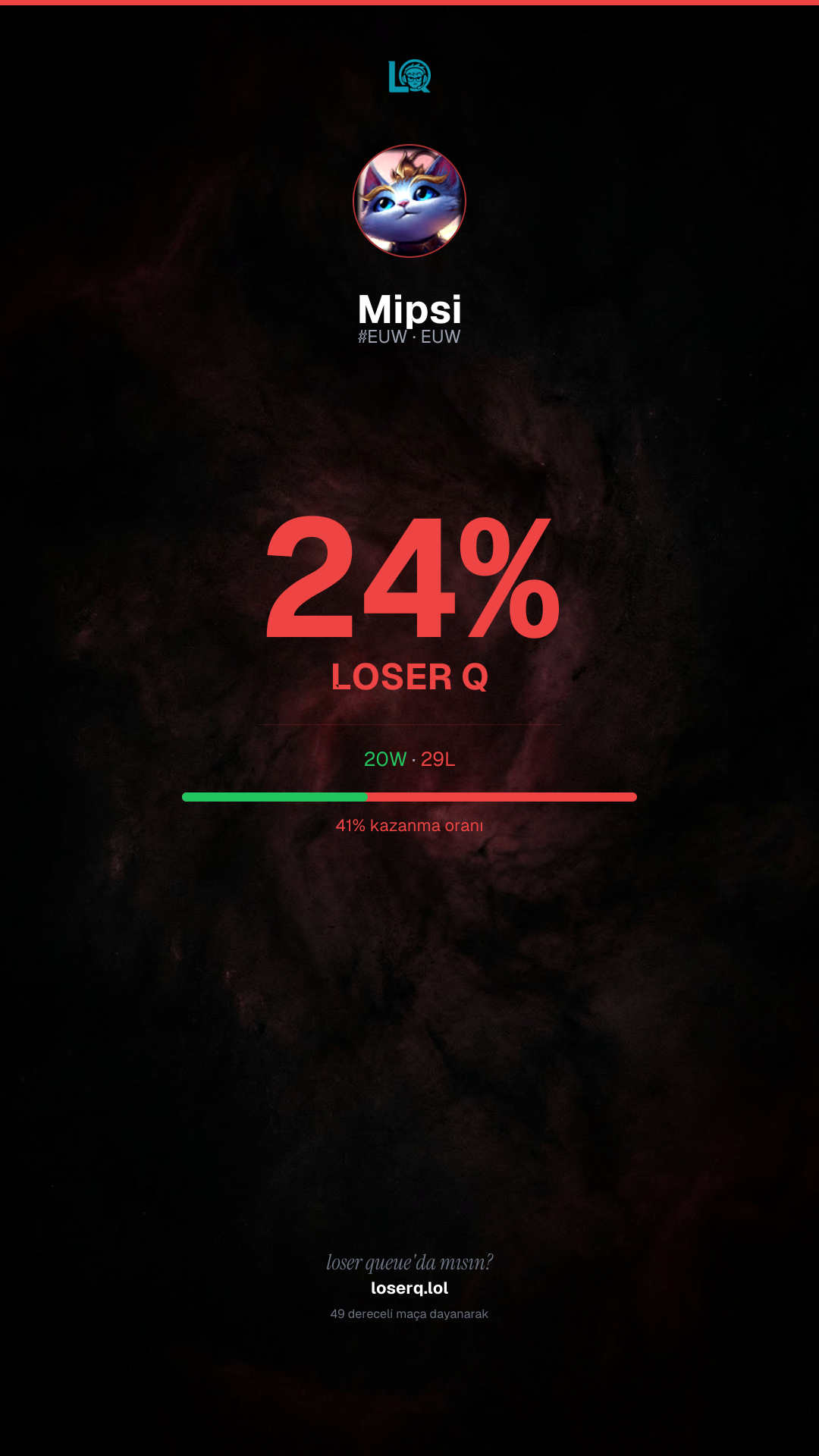 Takım arkadaşların ortalamadan fazla feedledi. Kötü şans serisi.