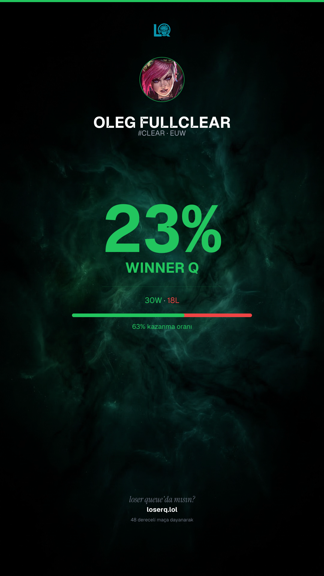 30 galibiyet, 18 mağlubiyet — 62% kazanma oranı. Güçlü bir performans.