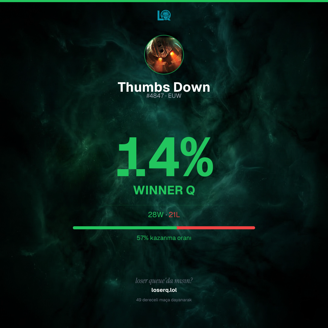 28 galibiyet, 21 mağlubiyet — 57% kazanma oranı. Güçlü bir performans.