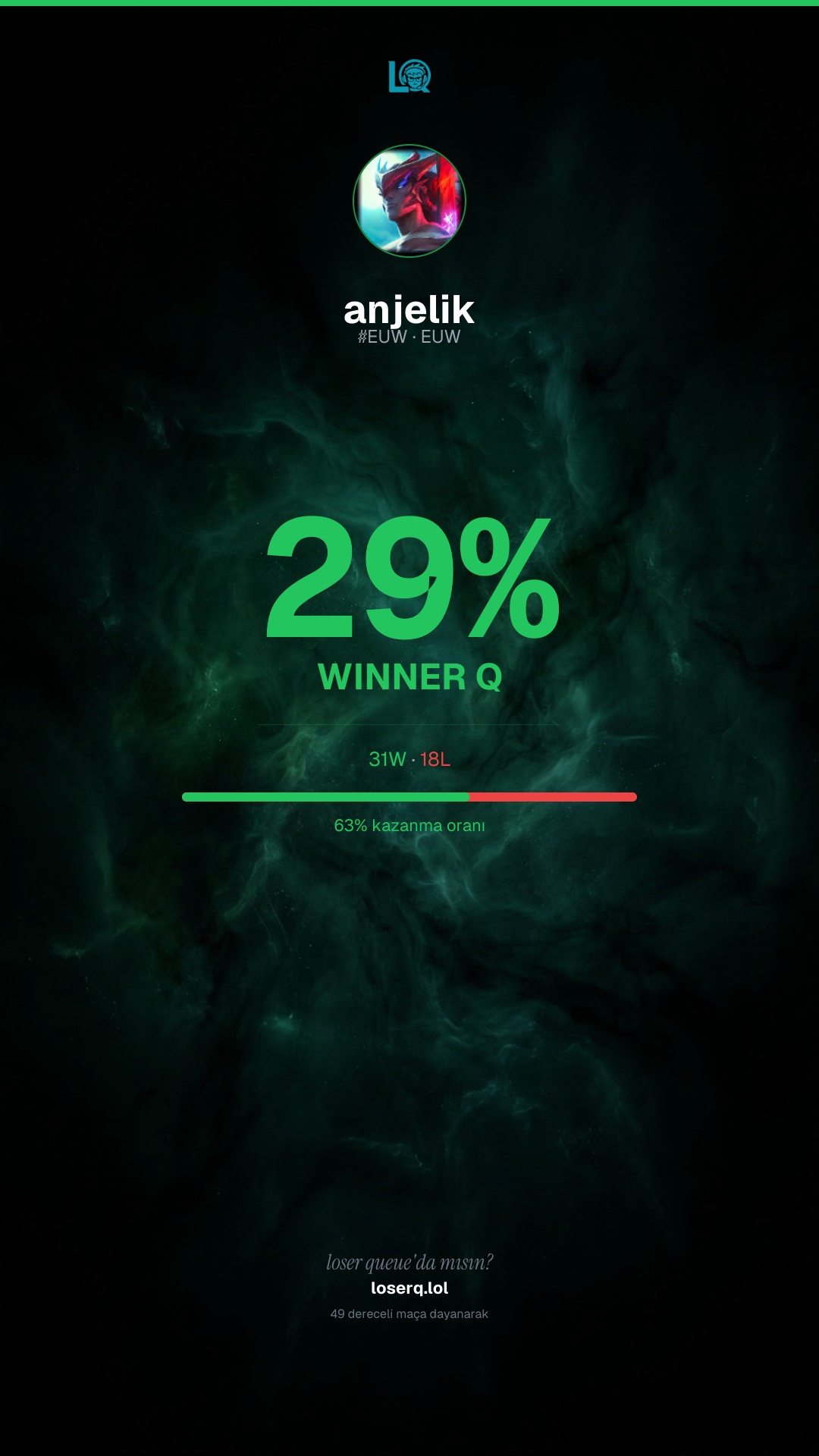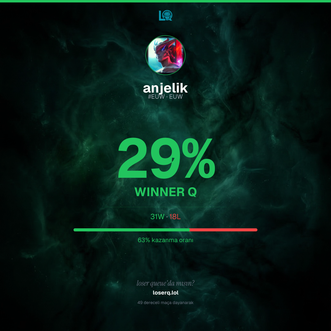 31 galibiyet, 18 mağlubiyet — 63% kazanma oranı. Güçlü bir performans.