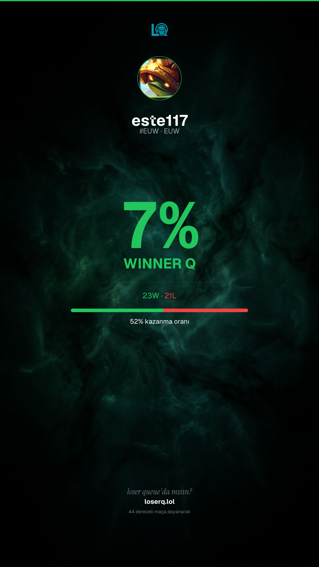 23 galibiyet, 21 mağlubiyet — 52% kazanma oranı.