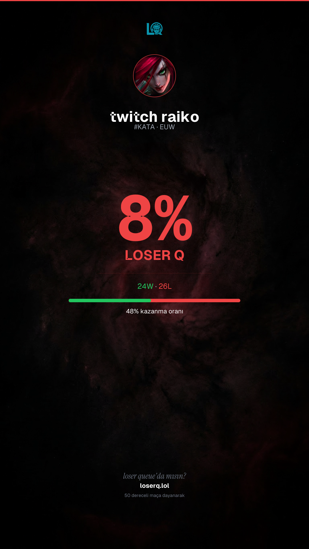 24 galibiyet, 26 mağlubiyet — 48% kazanma oranı.