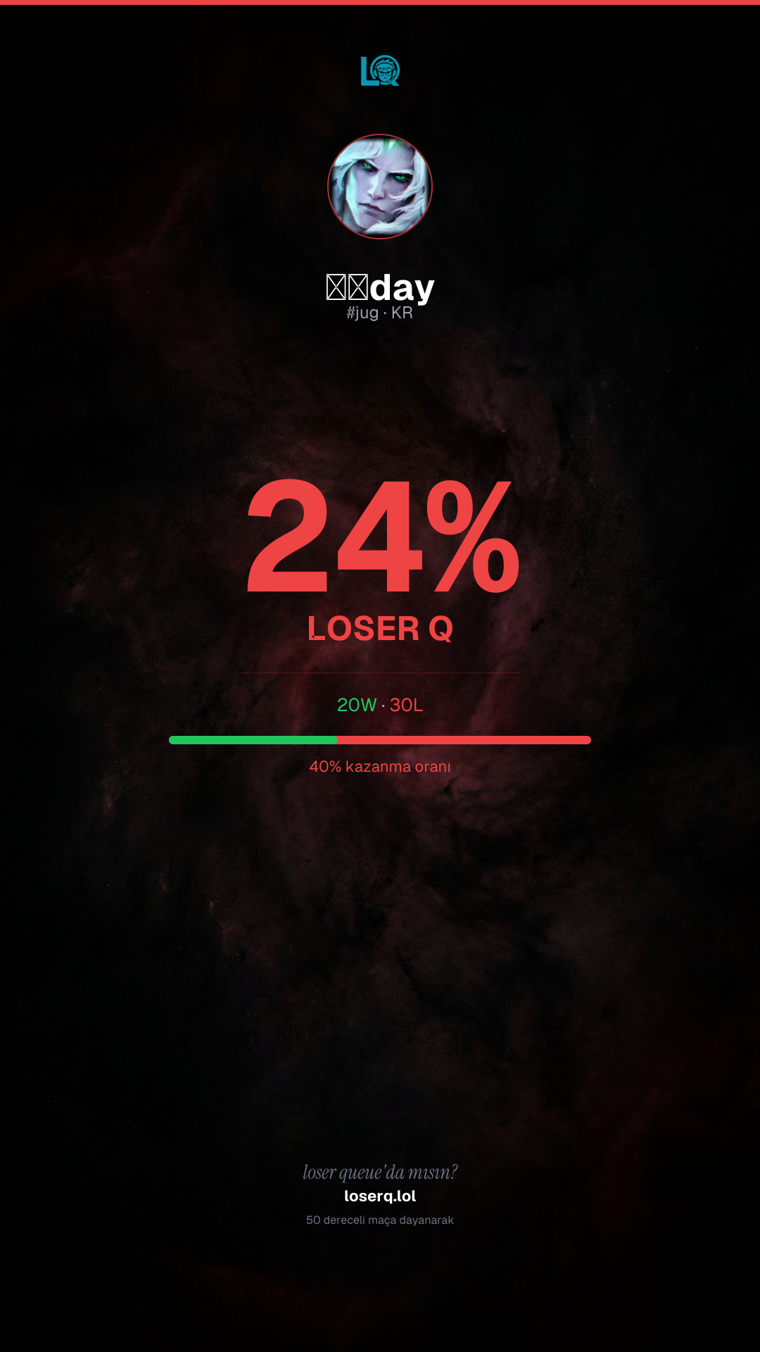 10 / 50 oyunda düşman feederi vardı (20%)