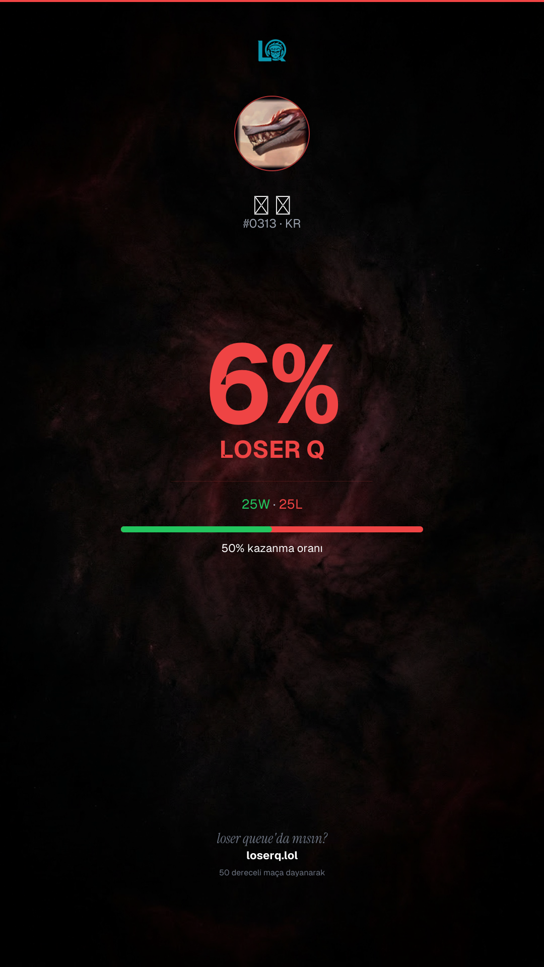 25 galibiyet, 25 mağlubiyet — 50% kazanma oranı.
