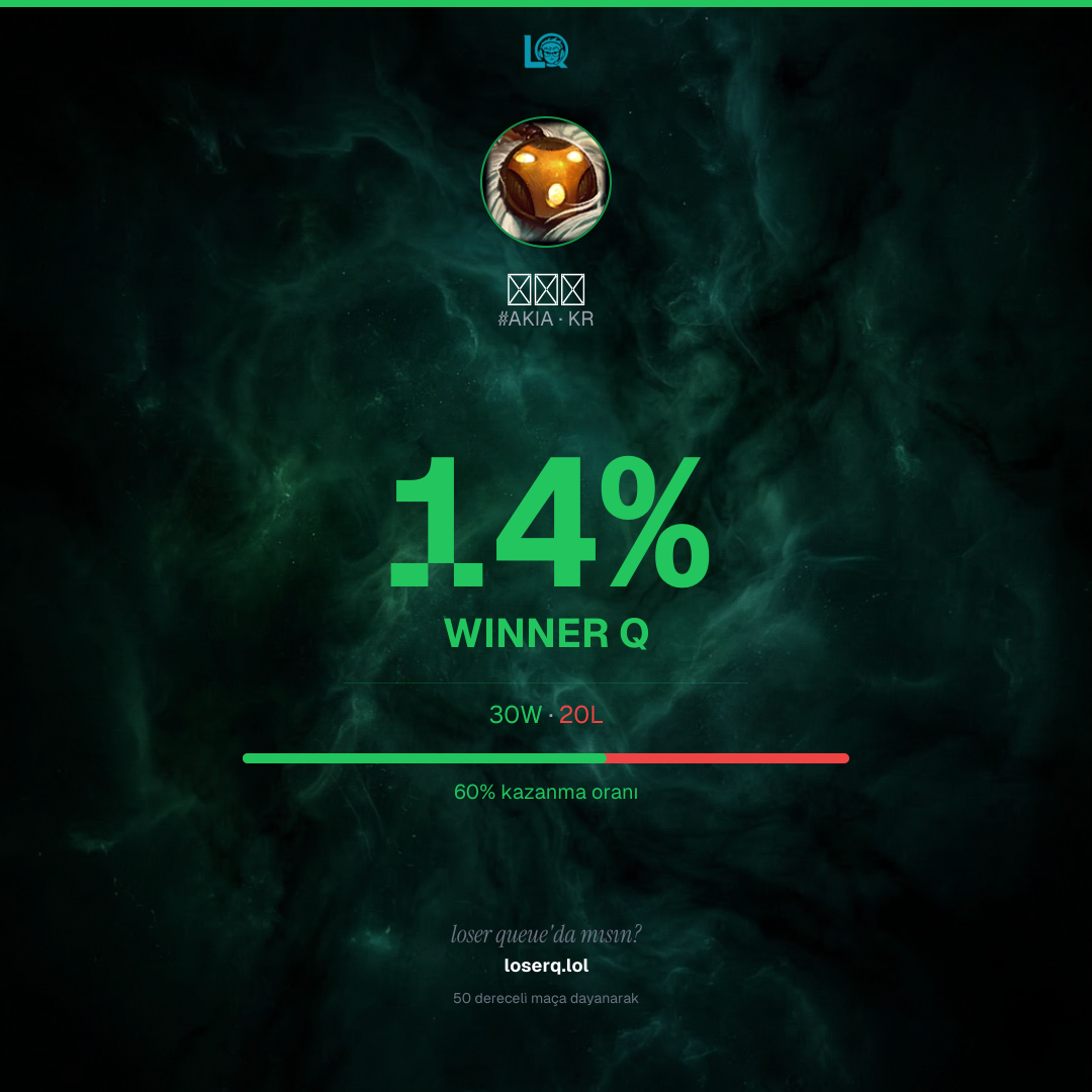 30 galibiyet, 20 mağlubiyet — 60% kazanma oranı. Güçlü bir performans.