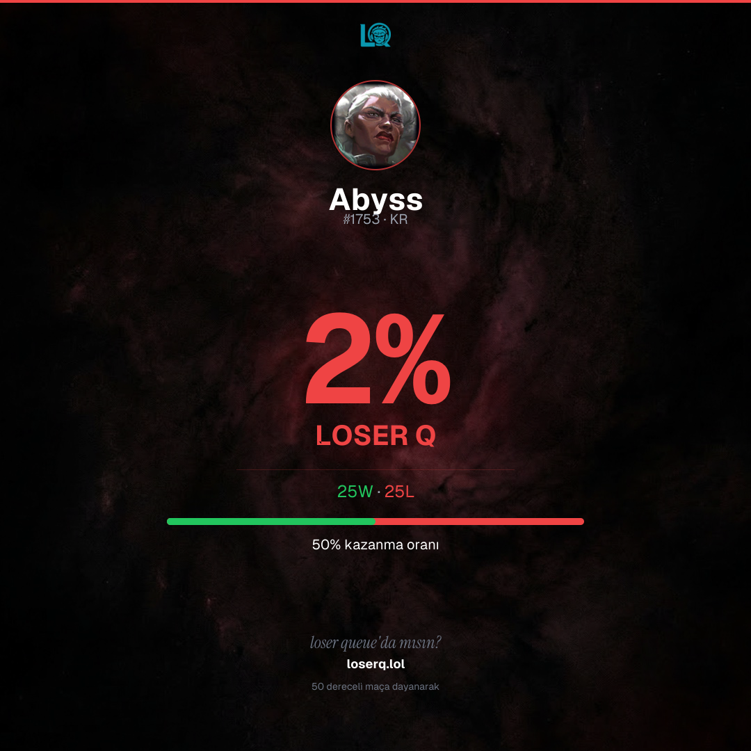 25 galibiyet, 25 mağlubiyet — 50% kazanma oranı.