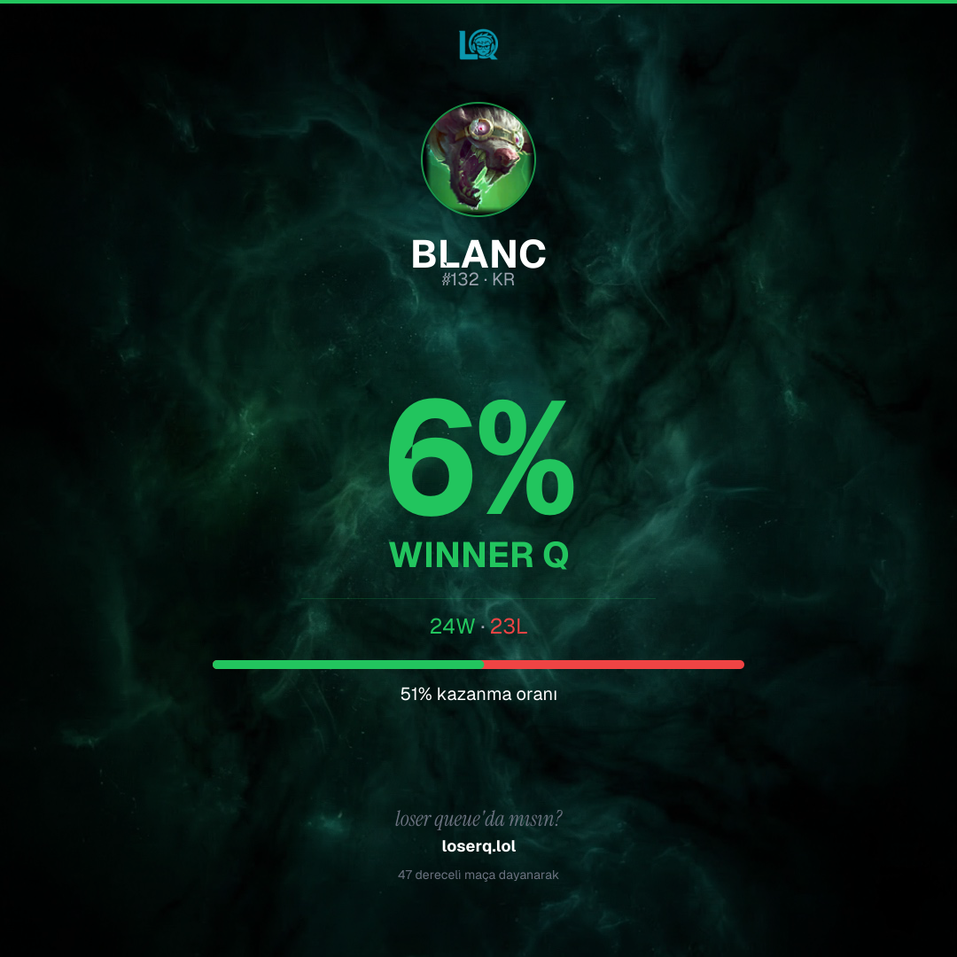 24 galibiyet, 23 mağlubiyet — 51% kazanma oranı.