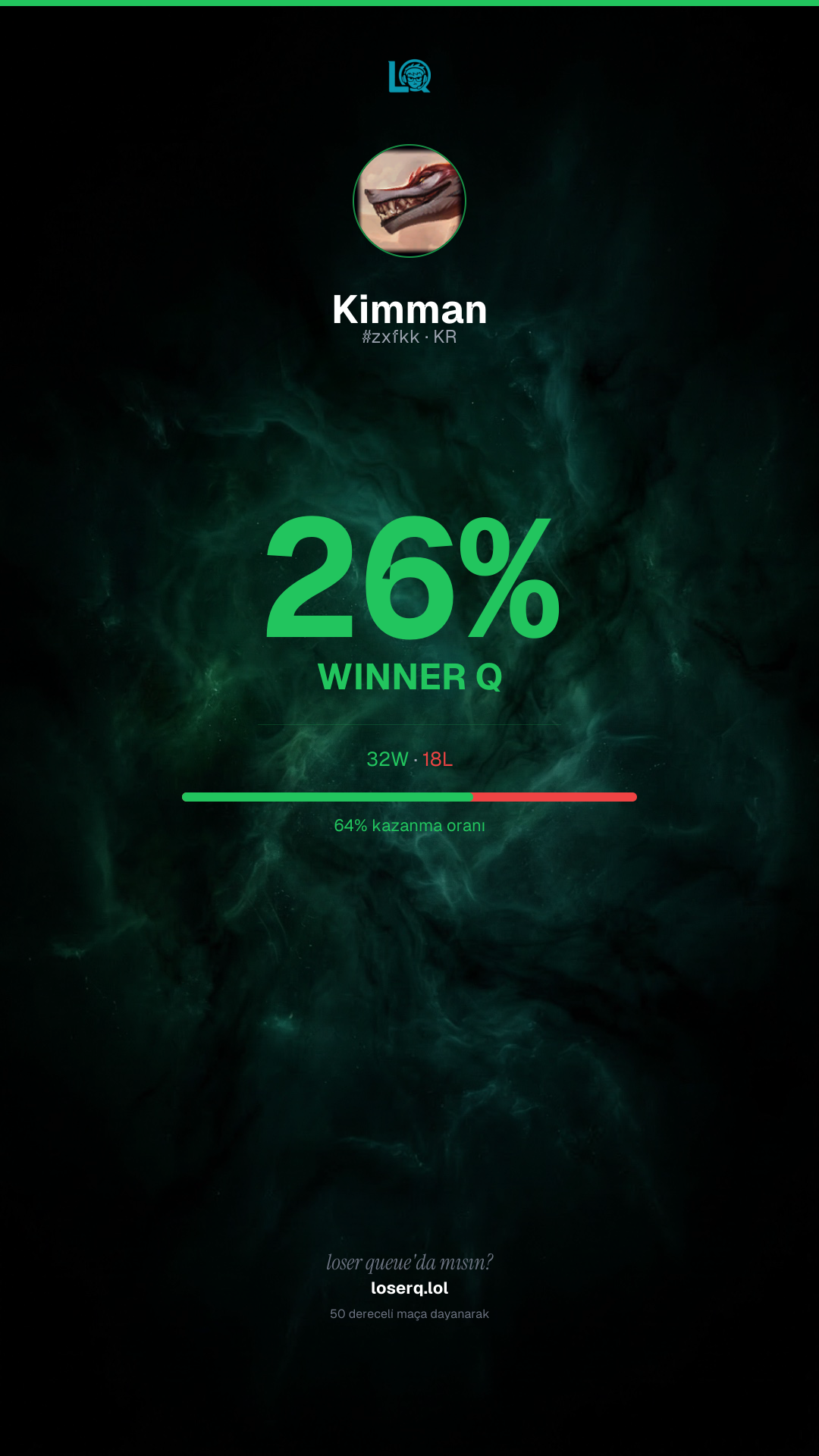 32 galibiyet, 18 mağlubiyet — 64% kazanma oranı. Güçlü bir performans.