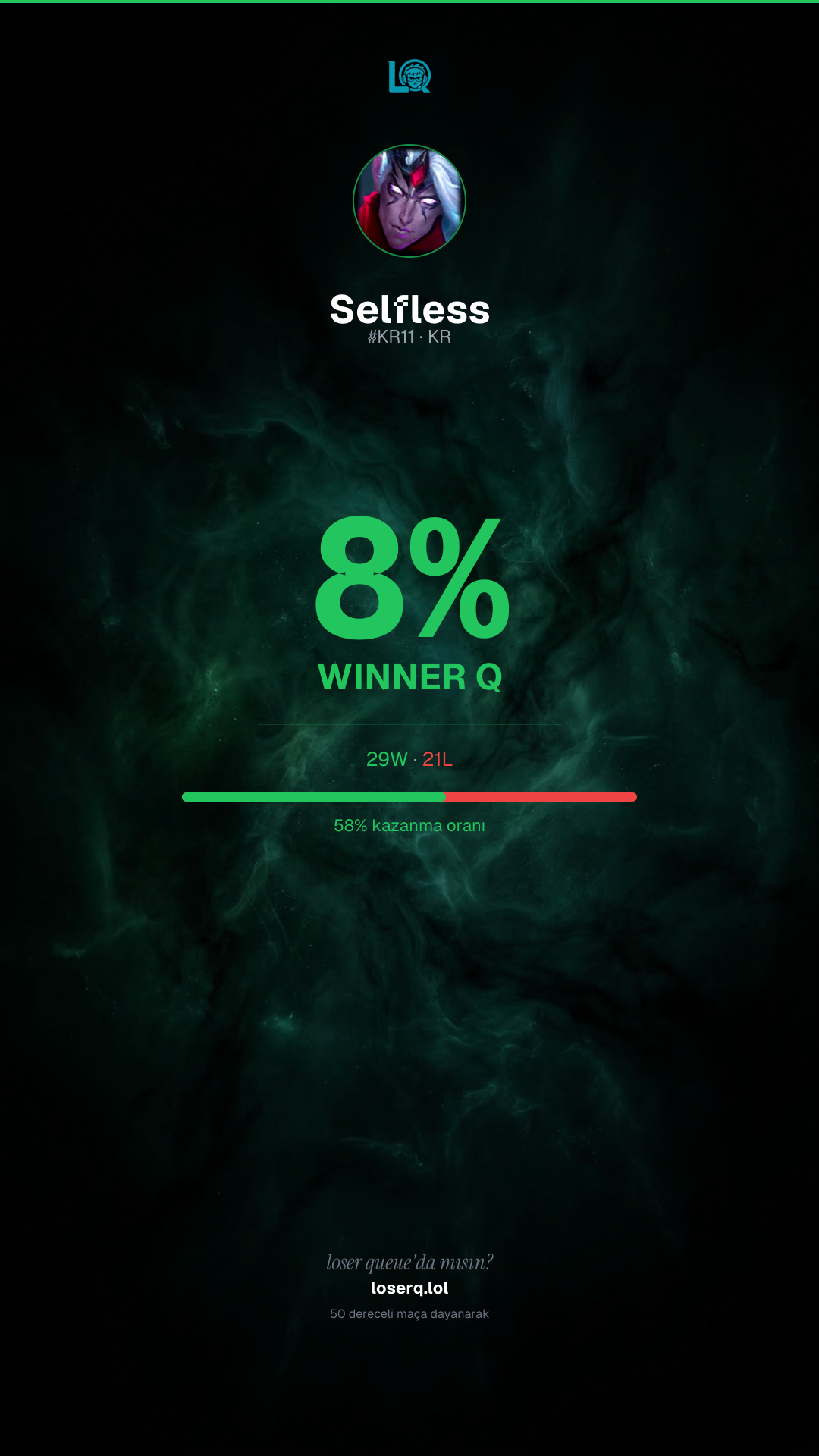 29 galibiyet, 21 mağlubiyet — 58% kazanma oranı. Güçlü bir performans.
