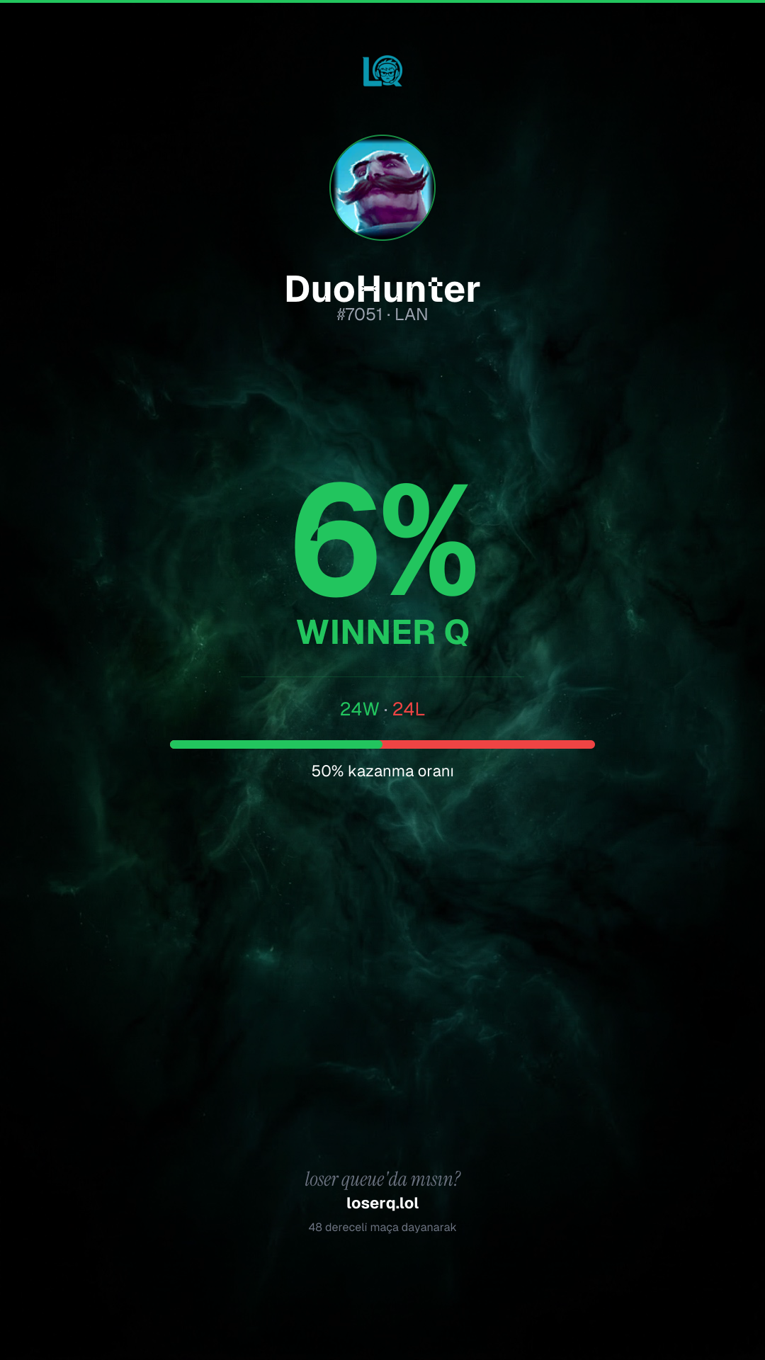 24 galibiyet, 24 mağlubiyet — 50% kazanma oranı.