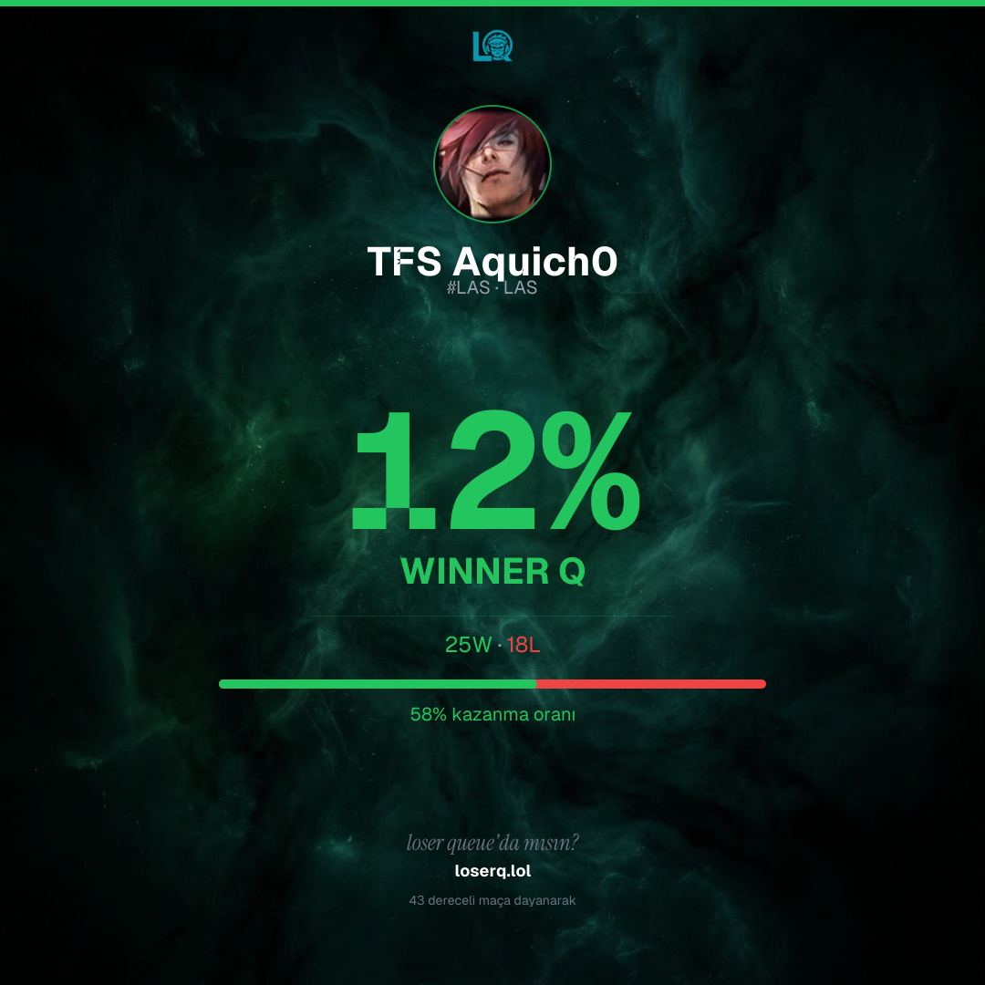25 galibiyet, 18 mağlubiyet — 58% kazanma oranı. Güçlü bir performans.