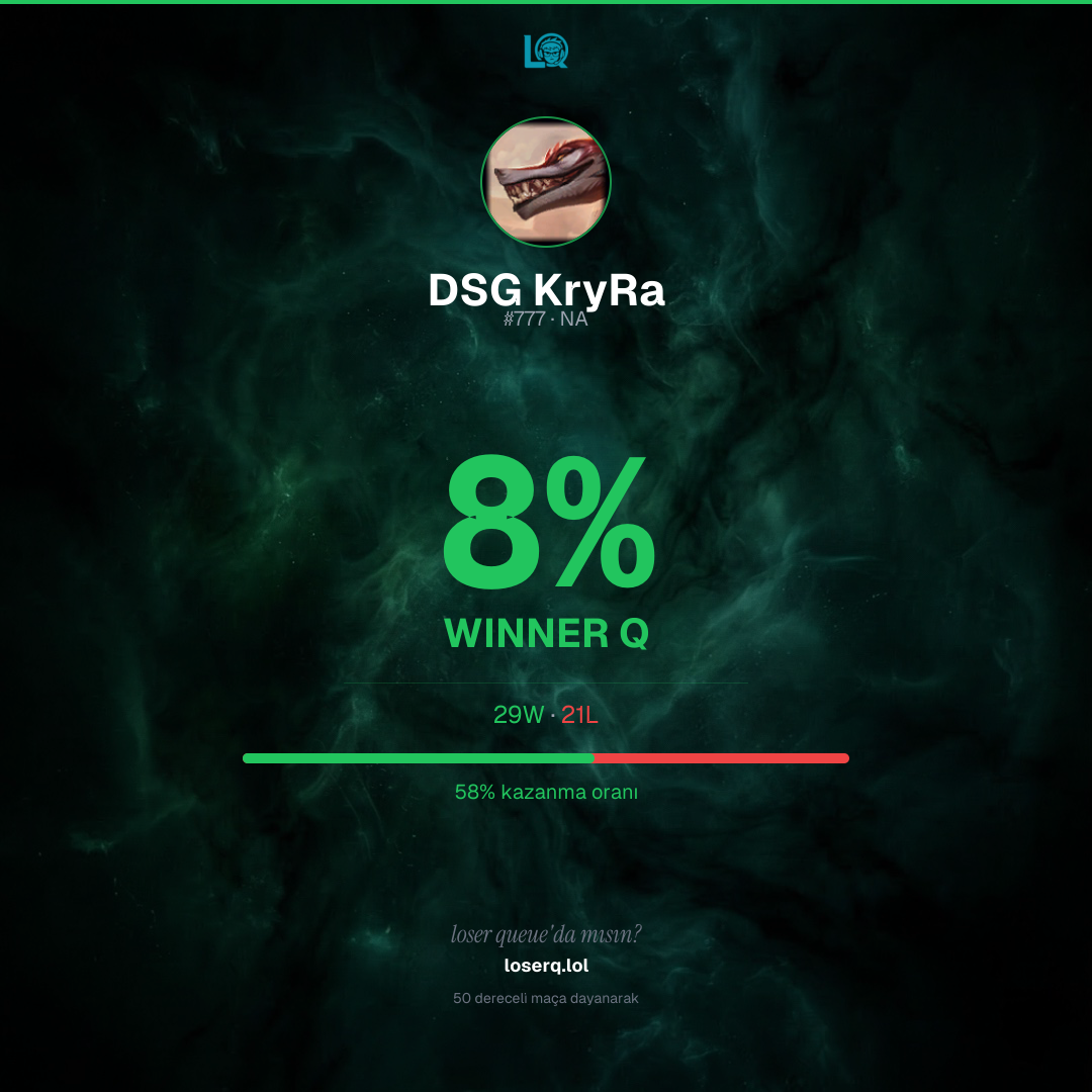 29 galibiyet, 21 mağlubiyet — 58% kazanma oranı. Güçlü bir performans.