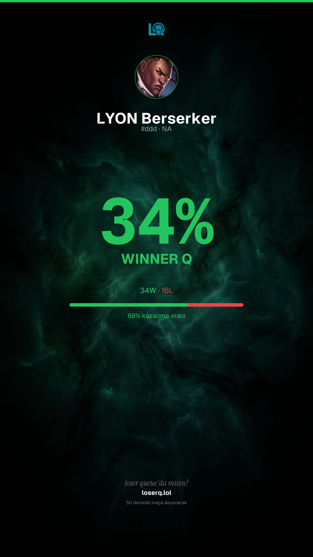 34 galibiyet, 16 mağlubiyet — 68% kazanma oranı. Güçlü bir performans.